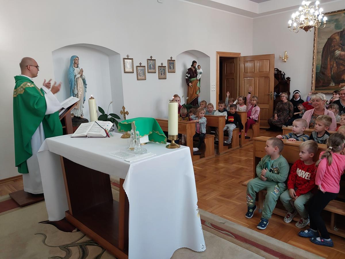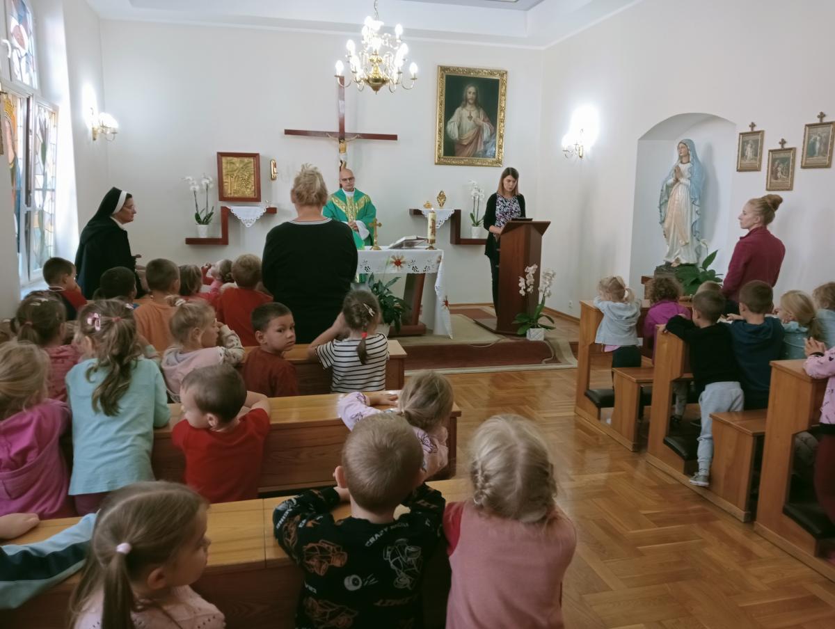 W kaplicy zakonnej Sióstr Augustianek na ul. Kopernika 2 w dniu 19 września odbyła się uroczysta Msza Święta z okazji Dnia Przedszkolaka i na rozpoczęcie nowego roku szkolnego. Przedszkolaki pięknie śpiewały przygotowane piosenki i pieśni religijne oraz czynnie uczestniczyły w oprawie Liturgii. Pracownicy naszego przedszkola brali czynny udział w Eucharystii poprzez czytanie Słowa Bożego, modlitwy wiernych oraz zaśpiewanie psalmu.