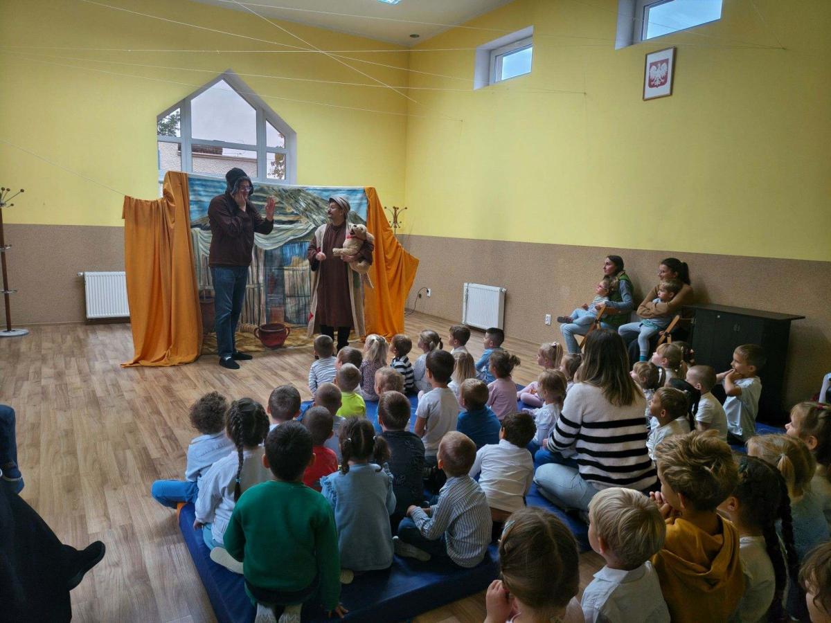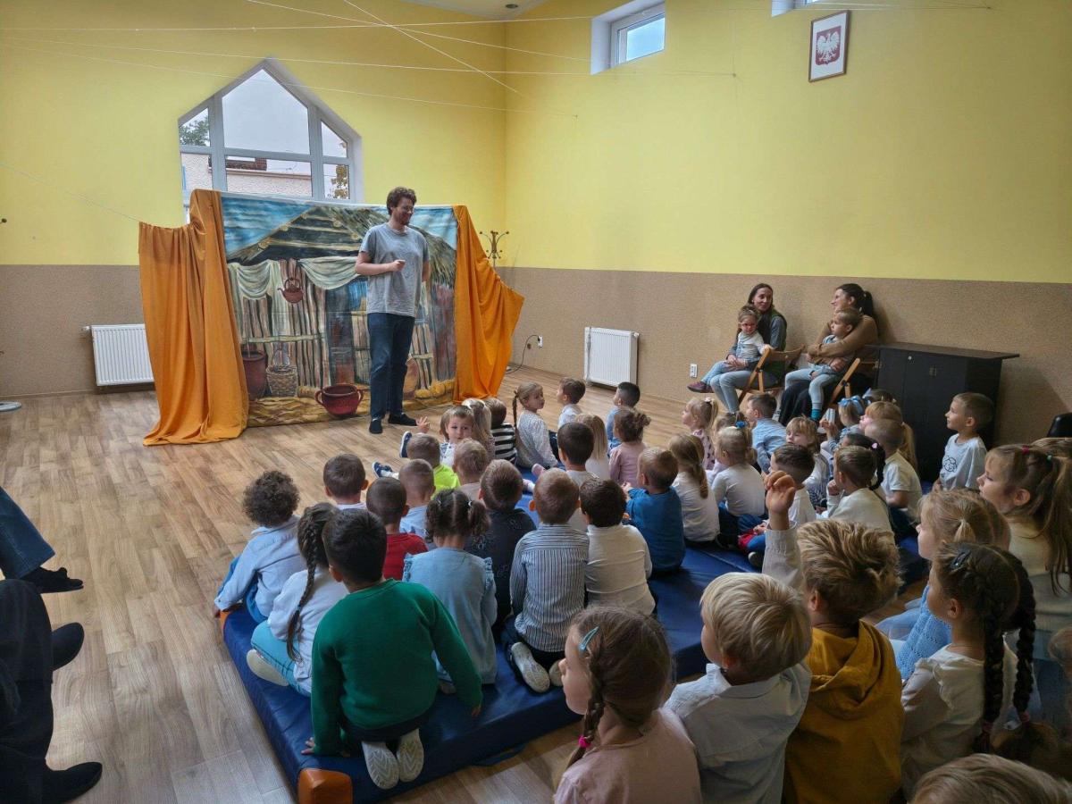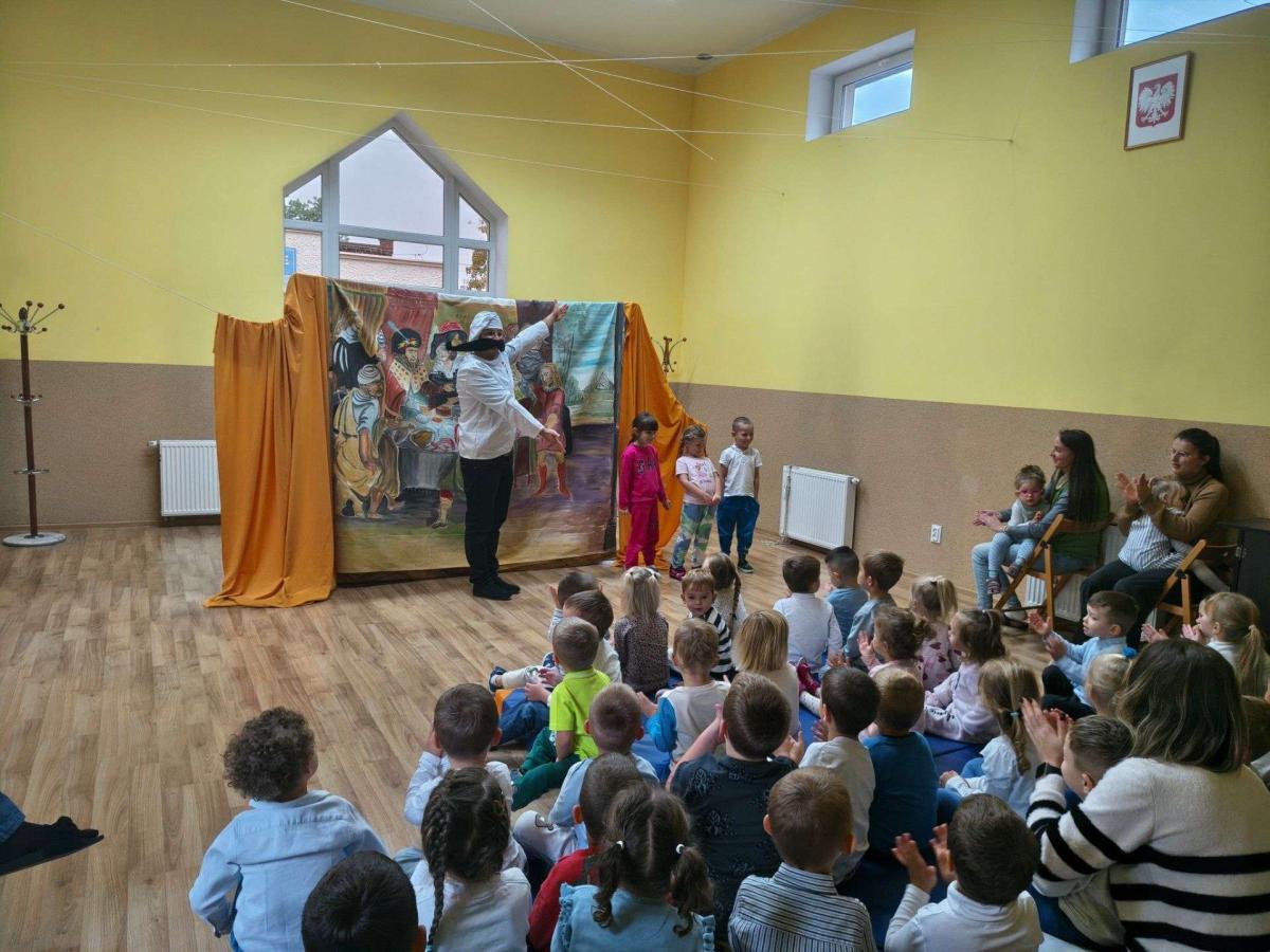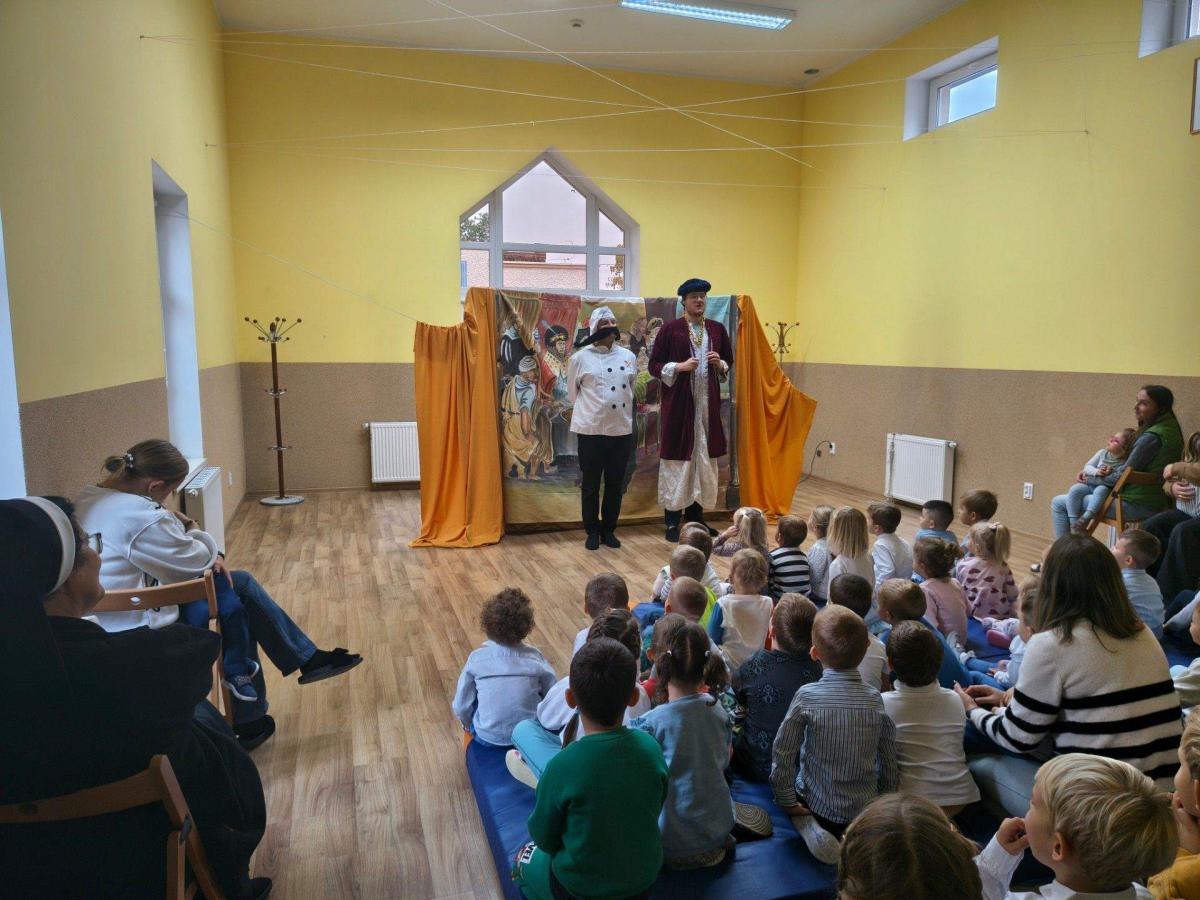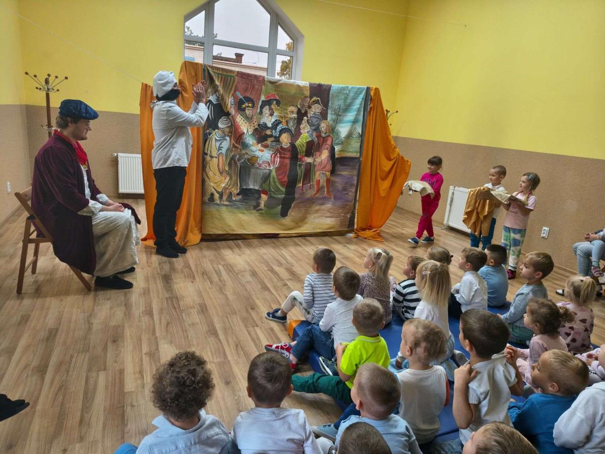 Przedszkolaki w dniu dzisiejszym miały zaszczyt gościć w przedszkolu dobrze im znany Teatr Eden z Wieliczki. Przedszkolaki miały okazję obejrzeć spektakl pt. „Samotny bogacz”. Z dużym zaciekawieniem i zaangażowaniem oglądaliśmy przedstawienie opowiadające o nawróceniu się samolubnego Bogacza, który nigdy nie chciał się z nikim dzielić. Jednak spotkanie z pewnym dobrym człowiekiem, który podał mu pomocną dłoń, gdy ten tego potrzebował, całkowicie go odmieniło. Zrozumiał w końcu, że bycie dobrym uszlachetnia, a dzielenie się z innymi może i nam dawać dużo radości. Humorystyczne dialogi zagwarantowały pełne zaangażowanie widowni i wspaniałą zabawę.