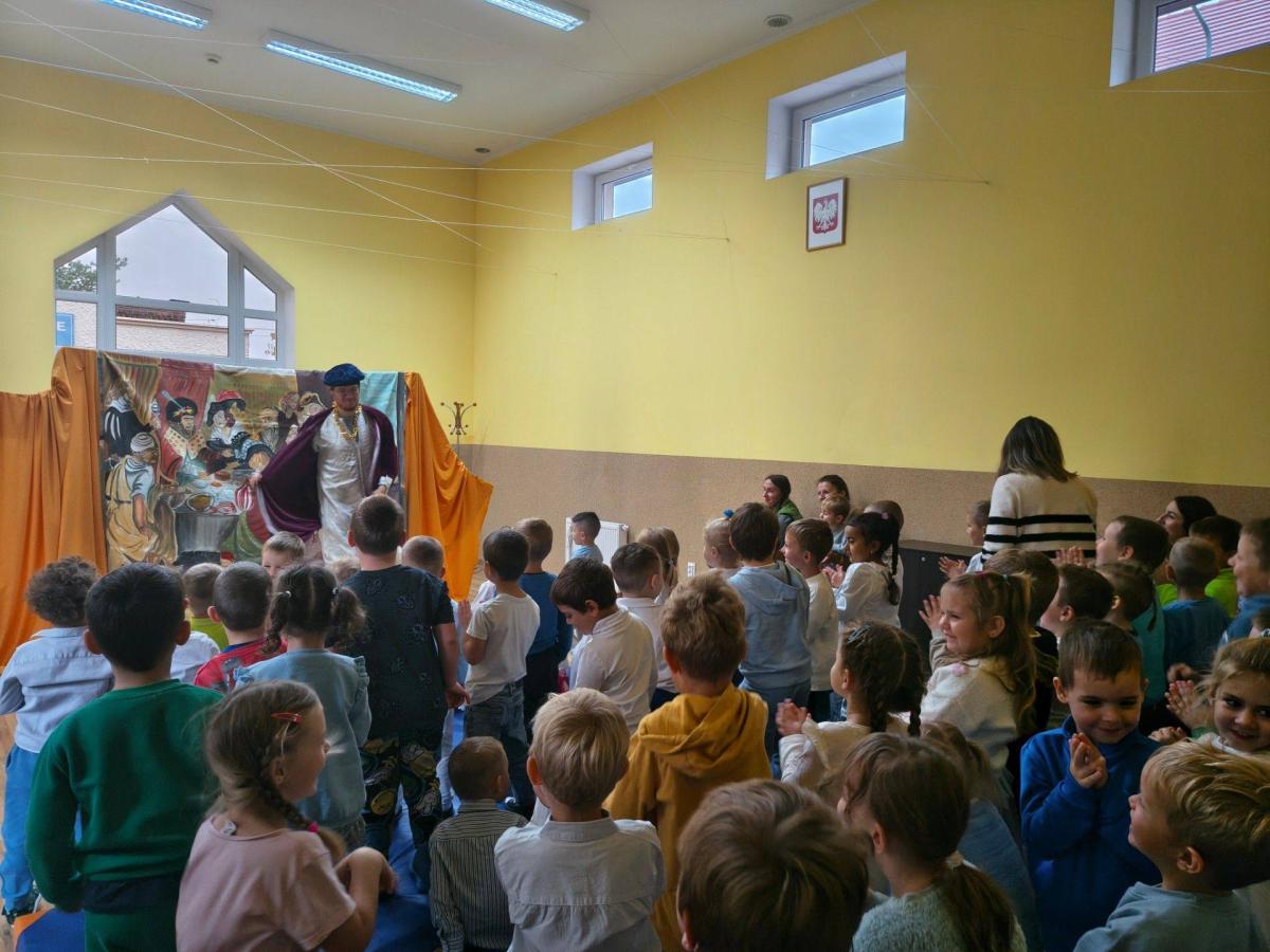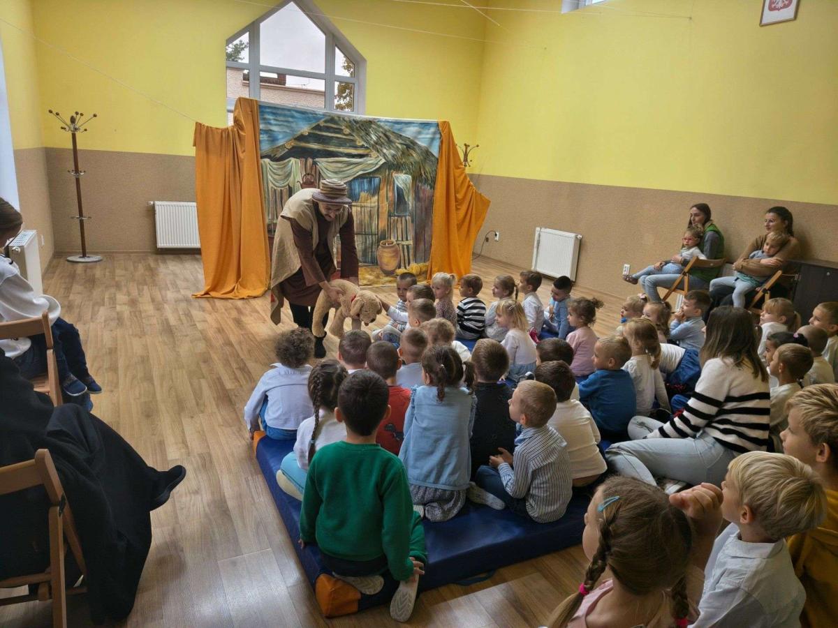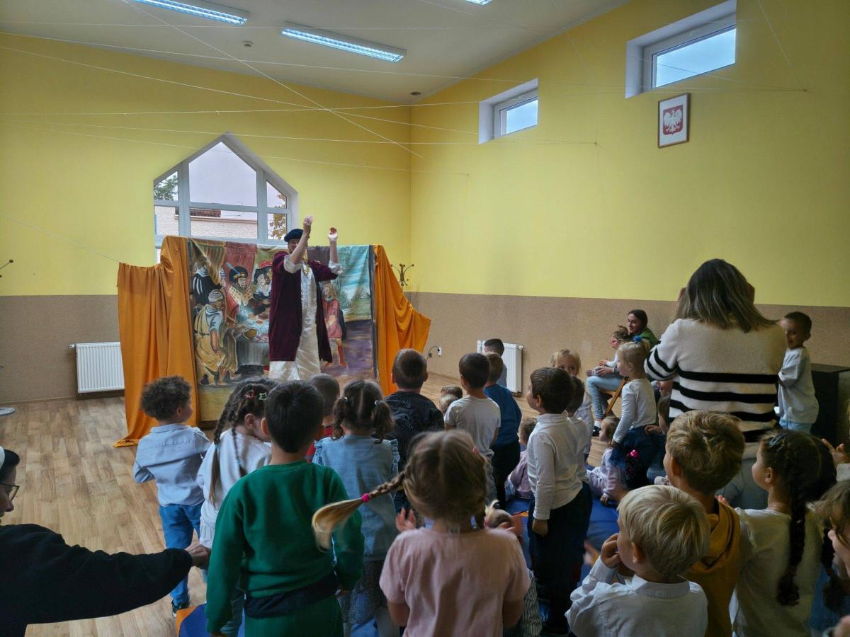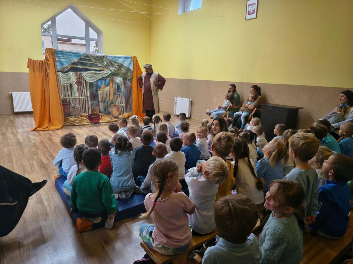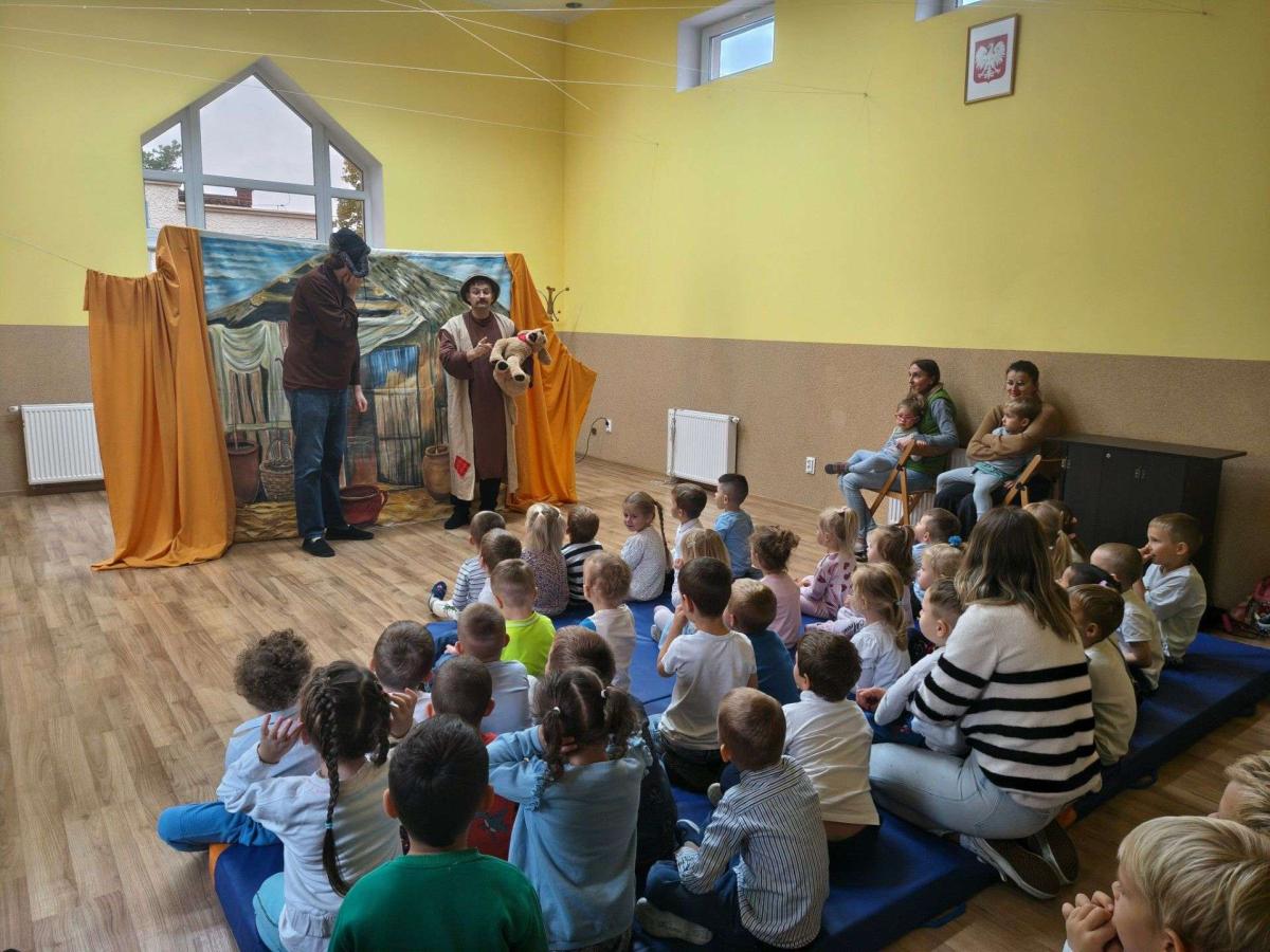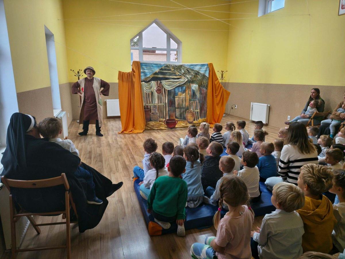 Przedszkolaki w dniu dzisiejszym miały zaszczyt gościć w przedszkolu dobrze im znany Teatr Eden z Wieliczki. Przedszkolaki miały okazję obejrzeć spektakl pt. „Samotny bogacz”. Z dużym zaciekawieniem i zaangażowaniem oglądaliśmy przedstawienie opowiadające o nawróceniu się samolubnego Bogacza, który nigdy nie chciał się z nikim dzielić. Jednak spotkanie z pewnym dobrym człowiekiem, który podał mu pomocną dłoń, gdy ten tego potrzebował, całkowicie go odmieniło. Zrozumiał w końcu, że bycie dobrym uszlachetnia, a dzielenie się z innymi może i nam dawać dużo radości. Humorystyczne dialogi zagwarantowały pełne zaangażowanie widowni i wspaniałą zabawę.