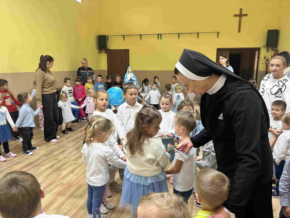 „To ostatnie dni w przedszkolu, przed nami wakacje (…) będzie głośno nas od września szkolny dzwonek wołał…” – słowami tymi, jak również skocznym tańcem i radosnymi śpiewami wypełniła się salka parafialna przy Kościele WNMP w Bielawie, gdzie to dnia 16 czerwca 2025 roku uroczystość zakończenia przedszkola świętowały wraz ze swoimi bliskimi dzieci z rocznika 2018. Na widowni starszaki gościły również ks. Prałata Stanisława Chomiaka oraz Siostry i Panie pracujące na co dzień w naszej placówce. Przygotowany przez dzieci występ był uwieńczeniem zdobytych umiejętności oraz rozwiniętych talentów przez czteroletni cykl wychowania i nauczania przedszkolnego. Nie zabrakło miłych wspomnień i okazji do podziękowania tym, którzy przyczynili się do rozwijania w sercach najmłodszych tego, co najcenniejsze i stanowiące najważniejszy fundament, na którym dzieci będą odważnie budowały swoją przyszłość. Tuż po zatańczeniu poloneza, starszaki odebrały z rąk Siostry Dyrektor „świadectwo swojej niesamowitej dziecięcej siły, aby wzbić się do góry, patrzeć w chmury, lecieć daleko stąd i mimo, że czasem trzeba będzie iść pod prąd, z powodzeniem spełniać swe pasje i marzenia”. Wraz z upominkami i pamiątkowym kolażem ze zdjęciami, dzieci zostały również obdarowane torcikiem. Radosnych uśmiechów, ale również łezkom wzruszenia nie było końca, zarówno u dzieci jak i osób dorosłych.