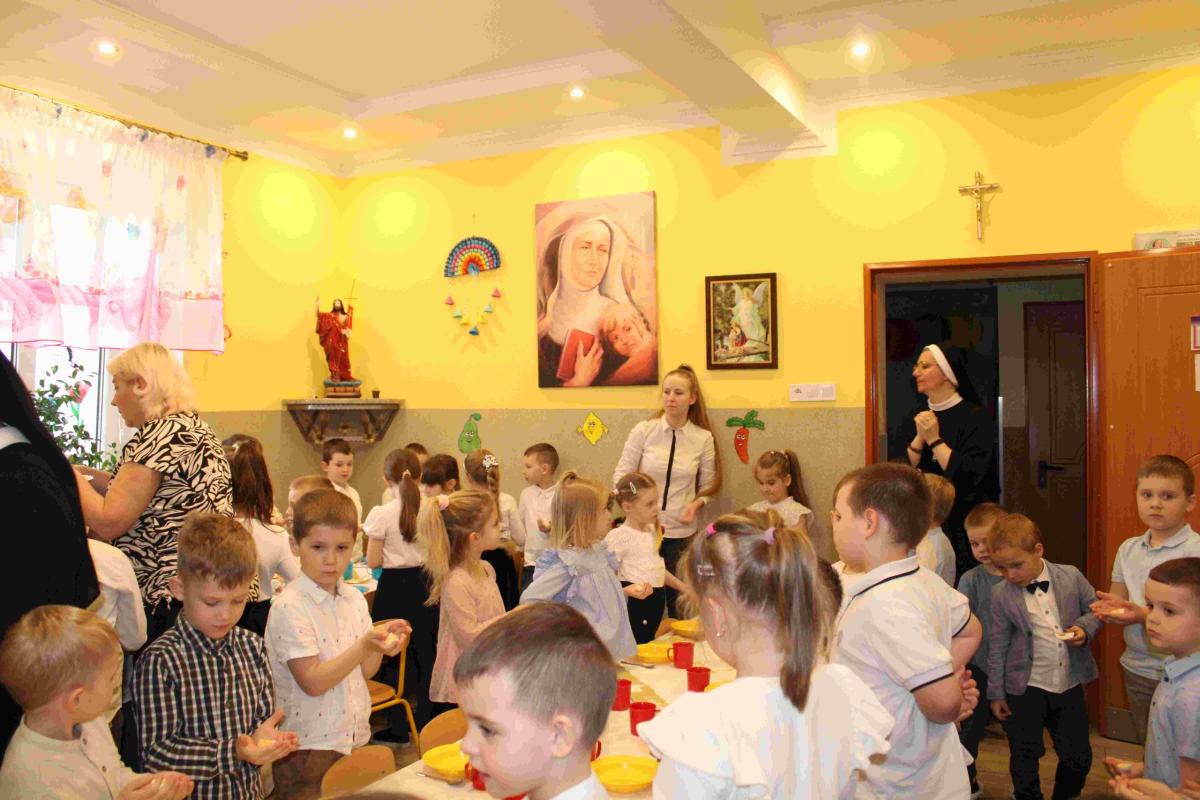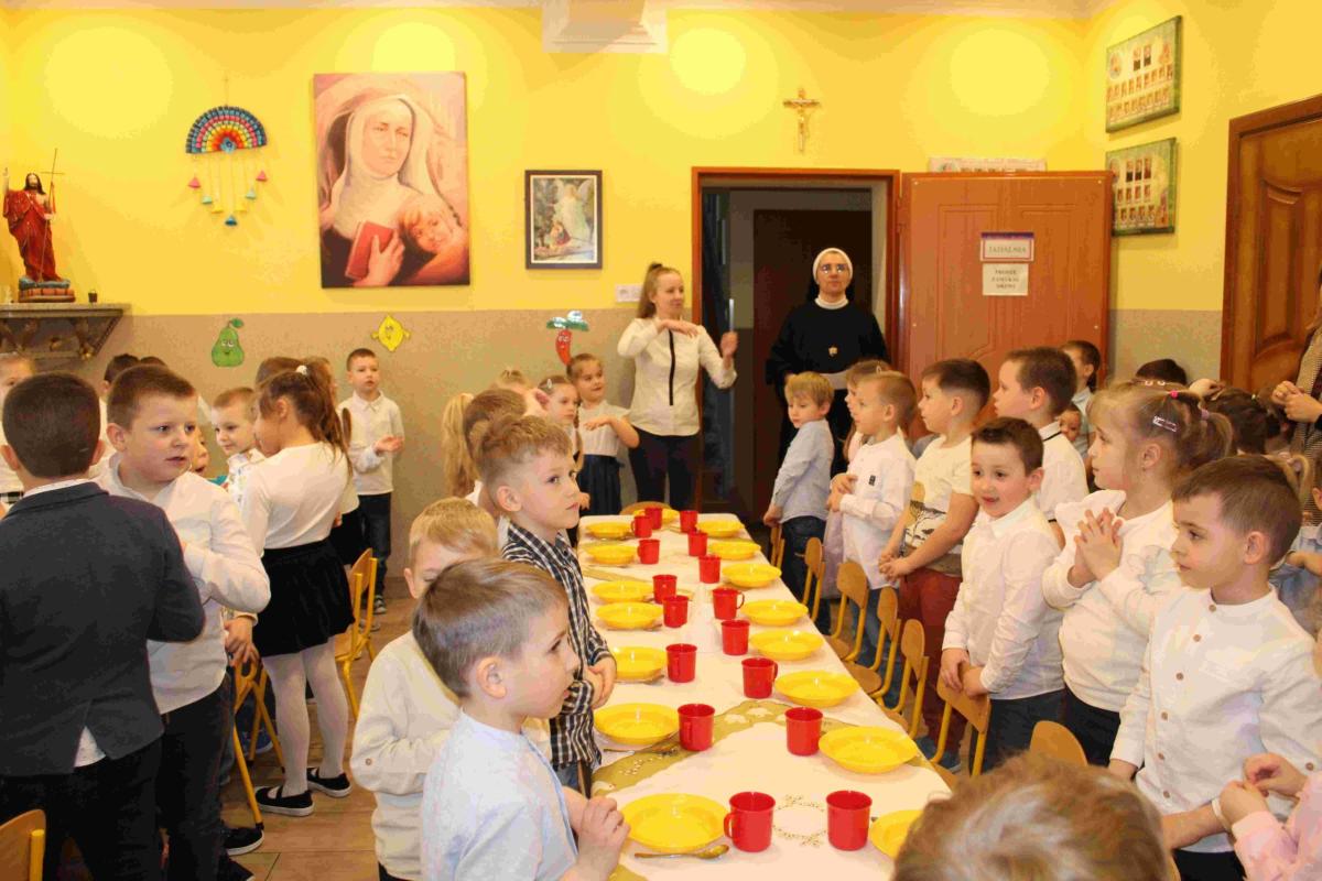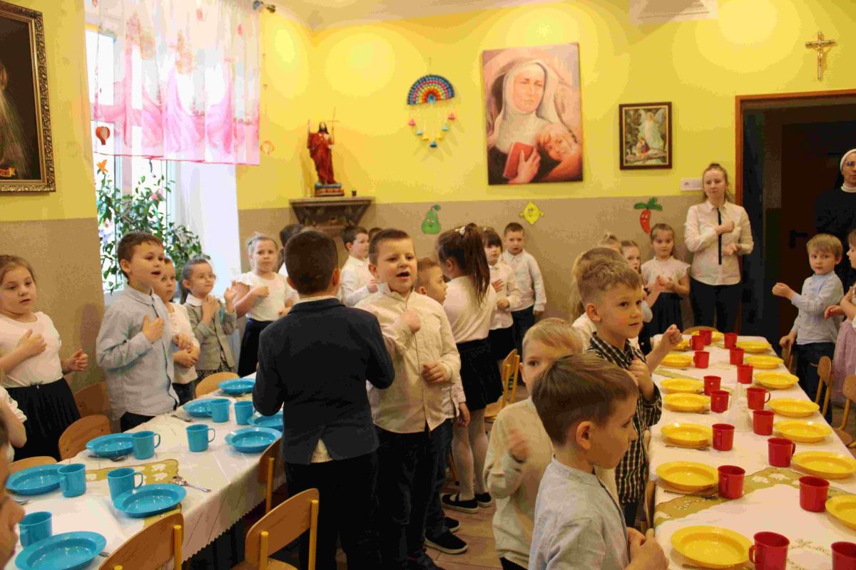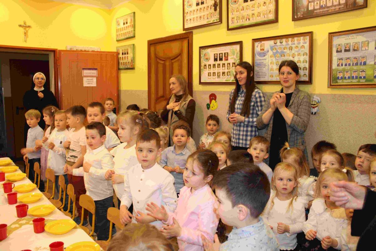 W środę rozpoczęliśmy Wielki Post. Ksiądz Tomasz przybliżył dzieciom znaczenie słów: „Nawracajcie się i wierzcie w Ewangelię”, tłumacząc, że są one zaproszeniem do zmiany serca i czynienia dobra. Na znak rozpoczęcia tego szczególnego czasu modlitwy, refleksji i postu kapłan posypał głowy dzieci popiołem. Podczas nabożeństwa towarzyszyły nam pieśni, które pomagały w modlitwie i wprowadzały atmosferę skupienia oraz zadumy.