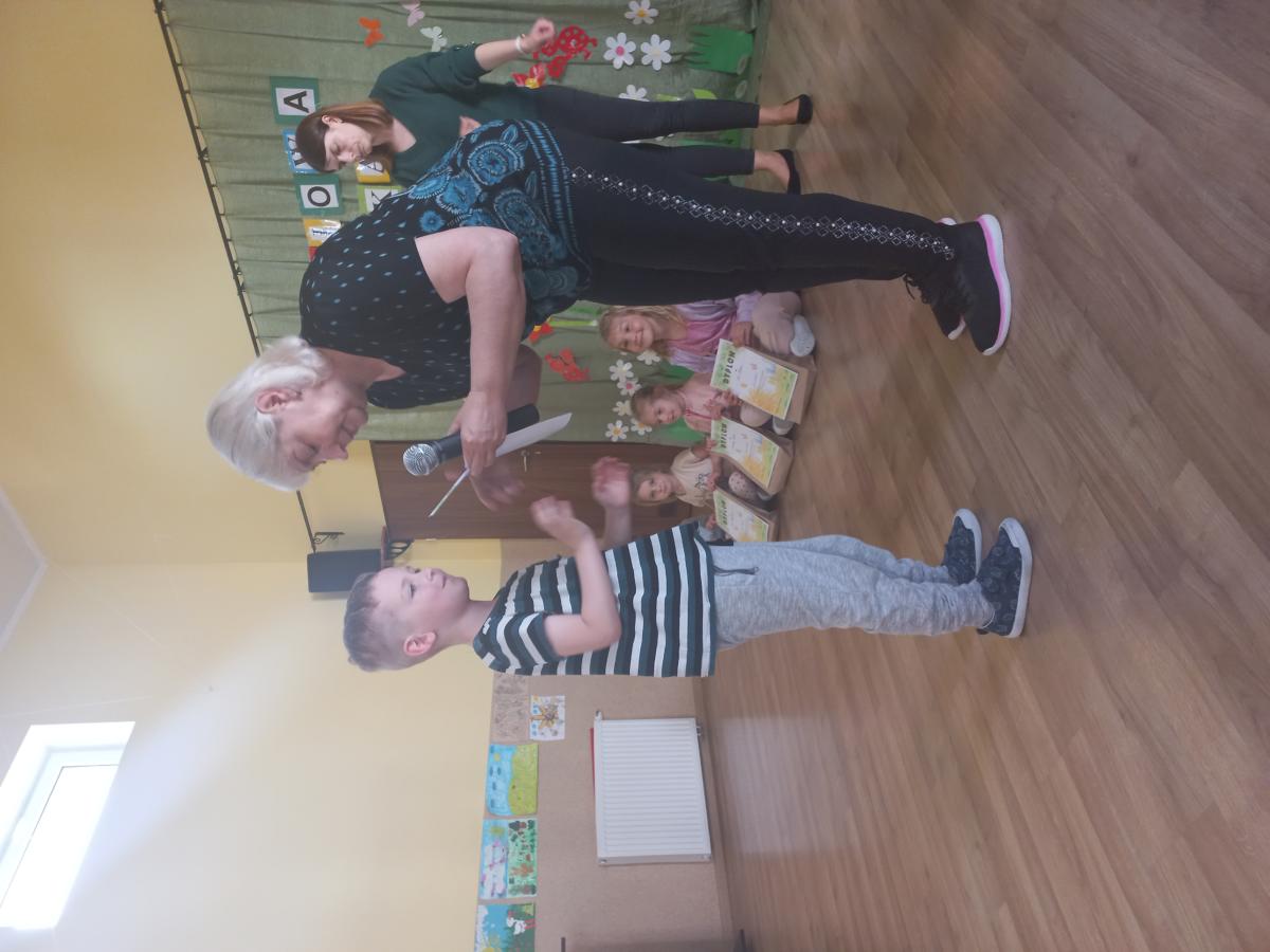 Przed wręczeniem nagród naszym przedszkolakom, mieliśmy możliwość porozmawiania o zwierzętach mieszkających na łące, a także wysłuchaliśmy zagadek o mieszkańcach majowej łąki.