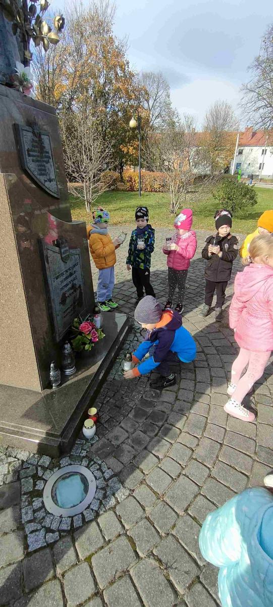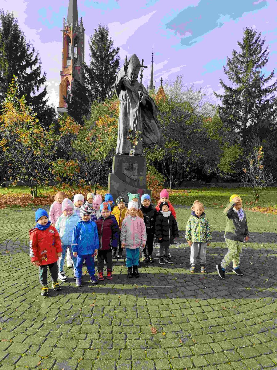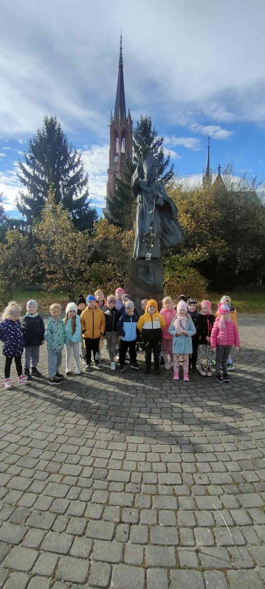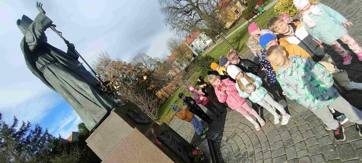 Grupa 4 i 6-latków wraz z wychowawcami zapaliła znicze przy pomniku wielkiego Polaka. Św. Janie Pawle II módl się za nami.