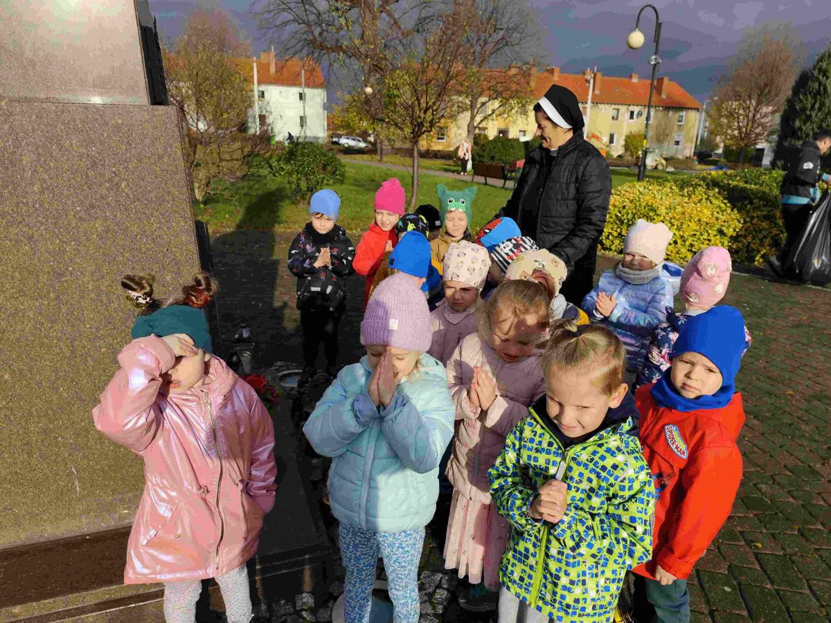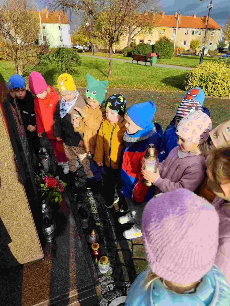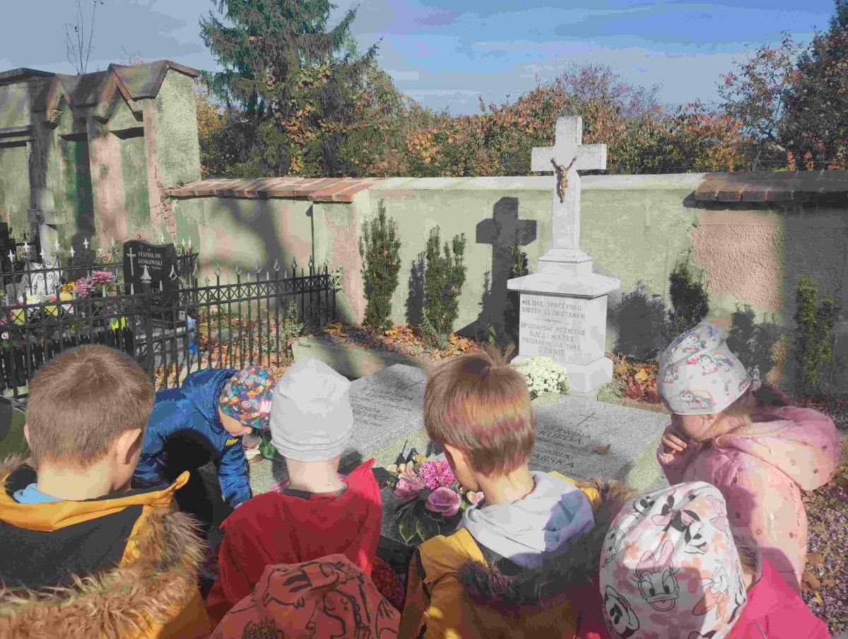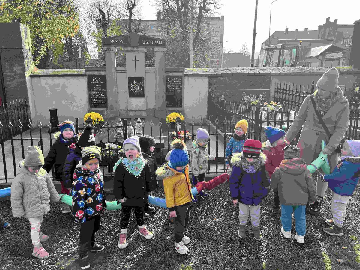 Podczas pobytu na cmentarzu przedszkolaki mogły w ciszy i zadumie zapalić znicze na grobach. Wychowankowie dowiedzieli się także, jak należy zachowywać się na cmentarzu, by nie zakłócać spokoju zmarłych i osób odwiedzających to miejsce. Spacer alejkami cmentarza był dla dzieci ogromnym przeżyciem, szły skupione i bardzo zaciekawione. To była jedna z ważniejszych lekcji wychowania rodzinnego, obywatelskiego i patriotycznego, która z pewnością pozostanie w pamięci dzieci.