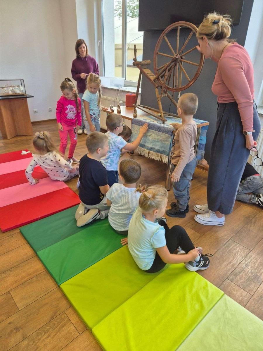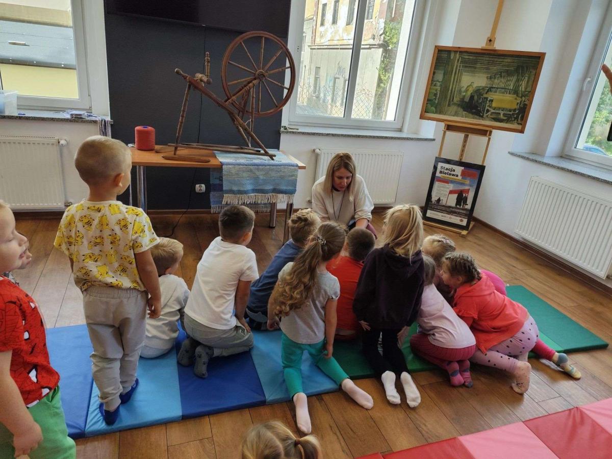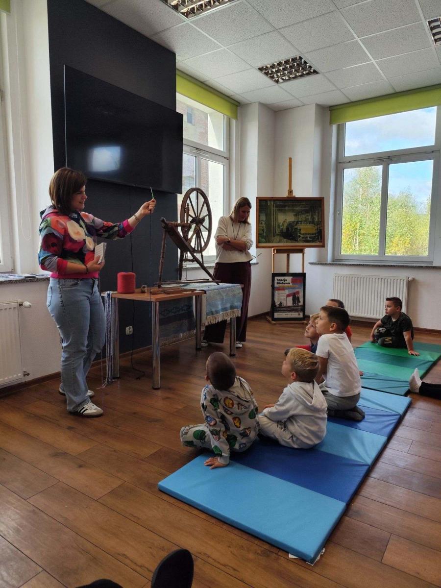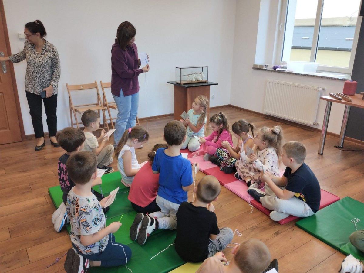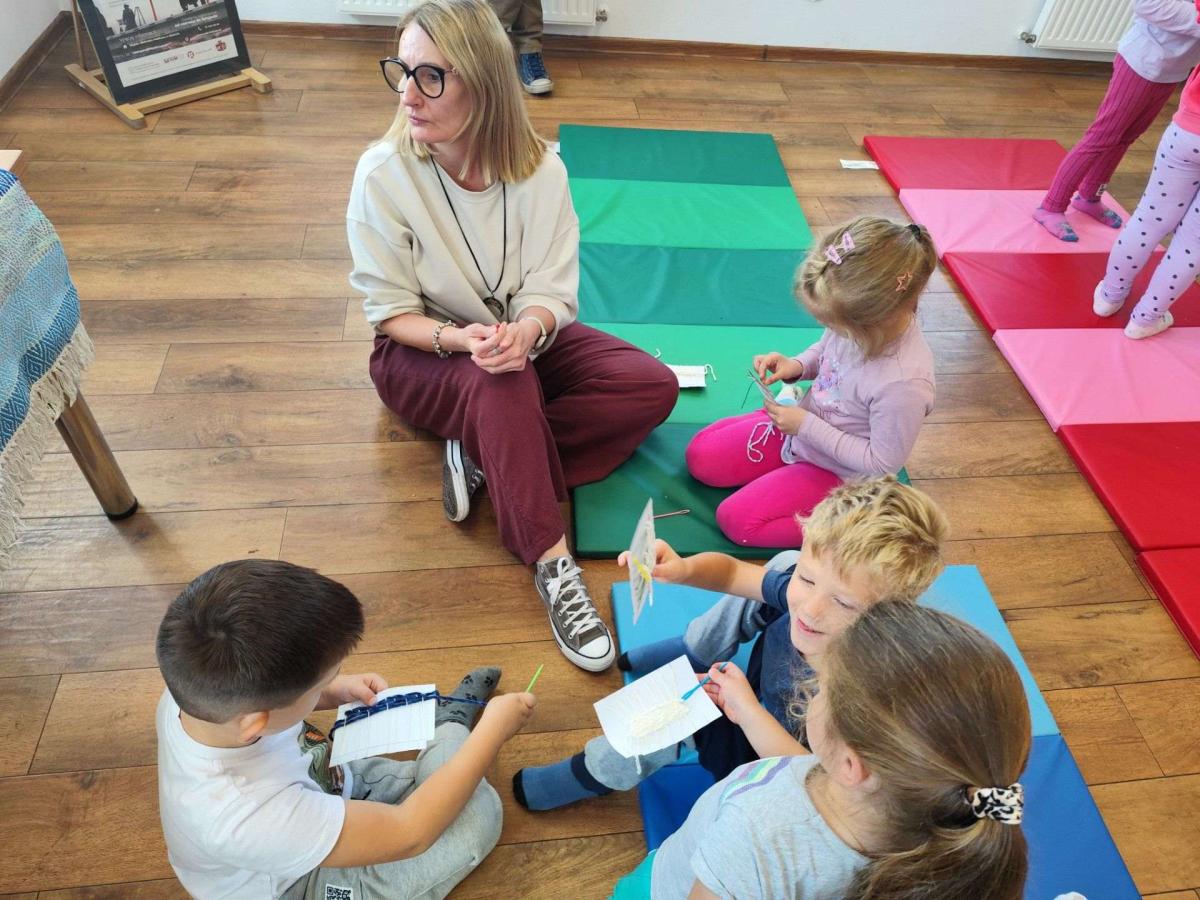 Podczas zajęć dzieci dowiedziały się, czym jest tkactwo i jak wyglądało w dawnych czasach. Poznały różne materiały wykorzystywane do tkania, w tym bawełnę – naturalne włókno pochodzące z rośliny, z którego wytwarza się tkaniny. Prowadząca warsztaty pokazała także czółenko – specjalne narzędzie służące do przewlekania nici między osnową a wątkiem.