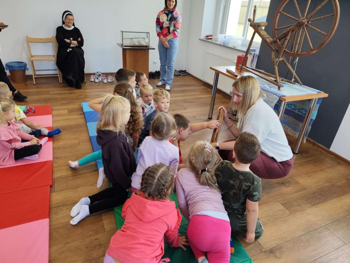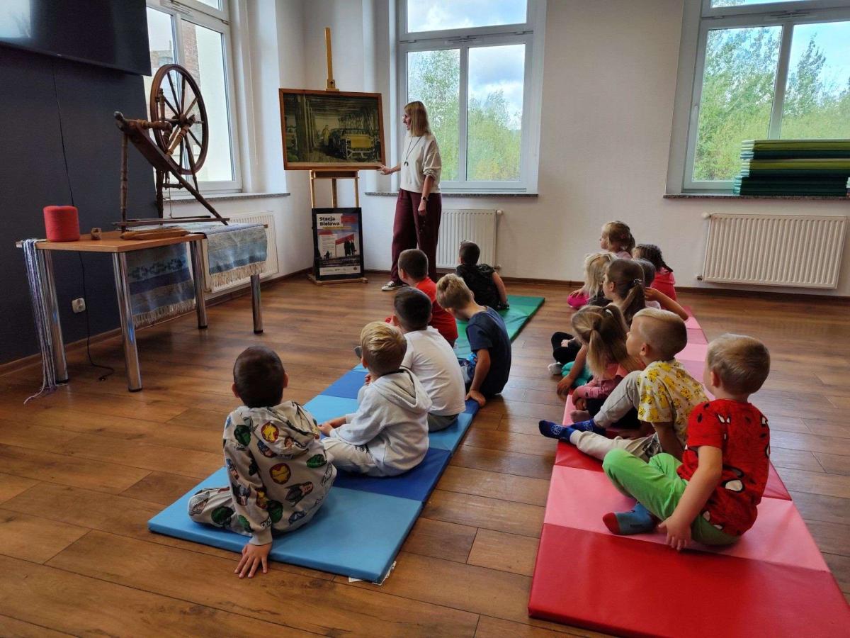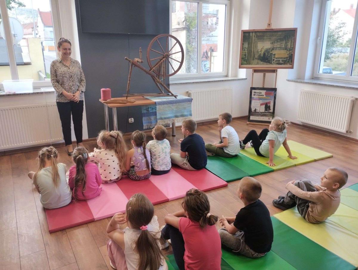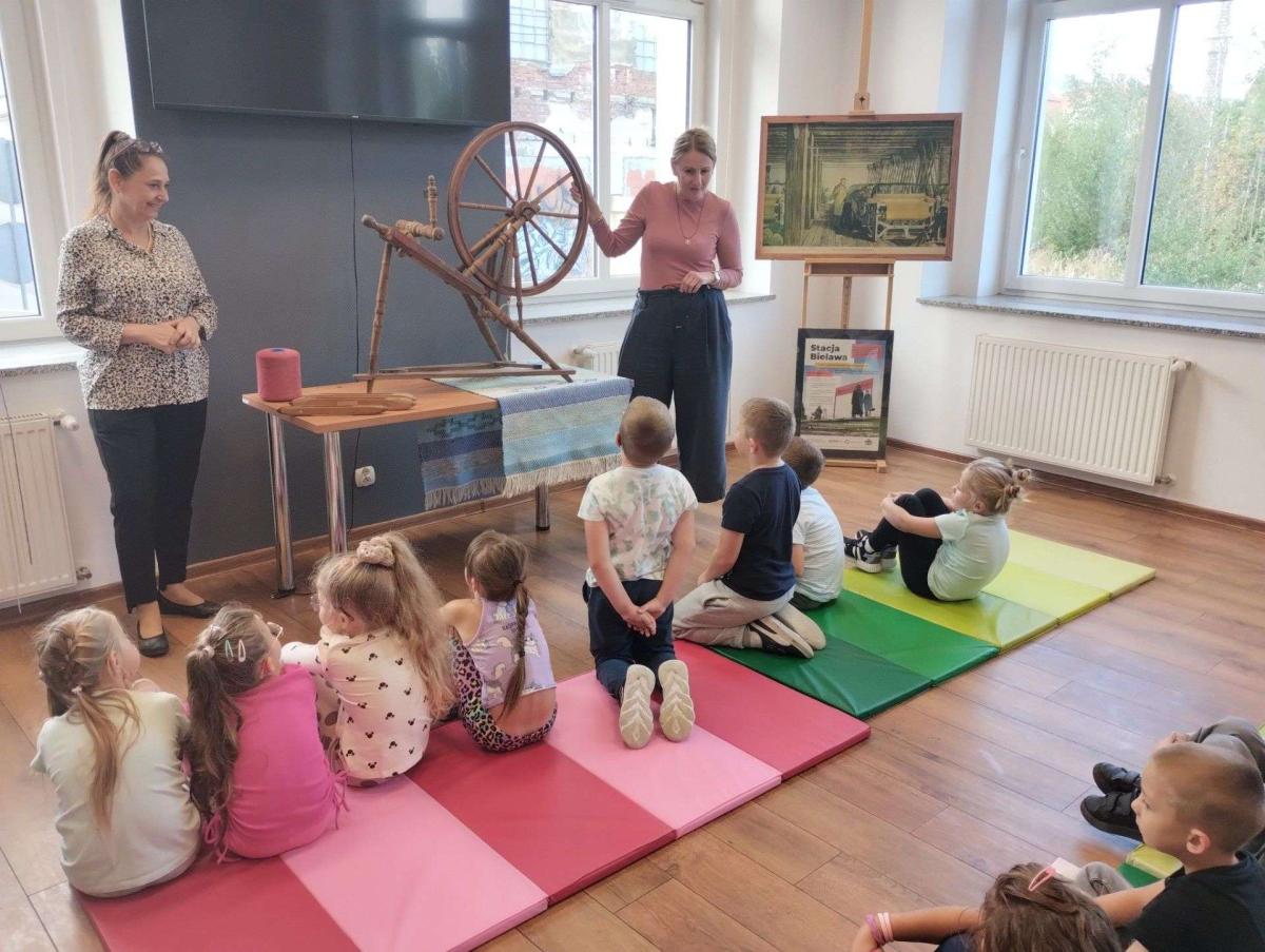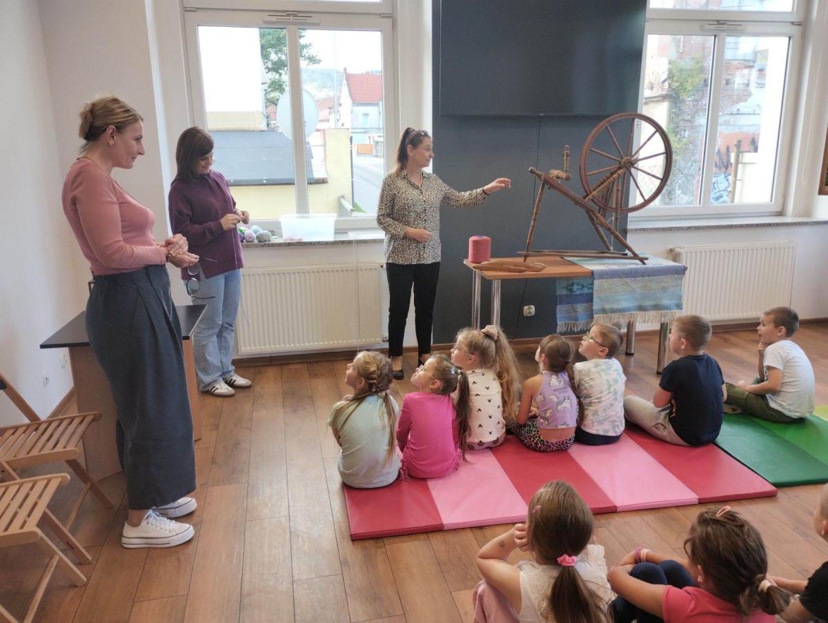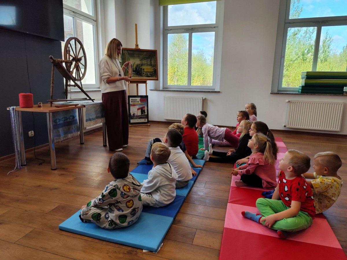 Podczas zajęć dzieci dowiedziały się, czym jest tkactwo i jak wyglądało w dawnych czasach. Poznały różne materiały wykorzystywane do tkania, w tym bawełnę – naturalne włókno pochodzące z rośliny, z którego wytwarza się tkaniny. Prowadząca warsztaty pokazała także czółenko – specjalne narzędzie służące do przewlekania nici między osnową a wątkiem.