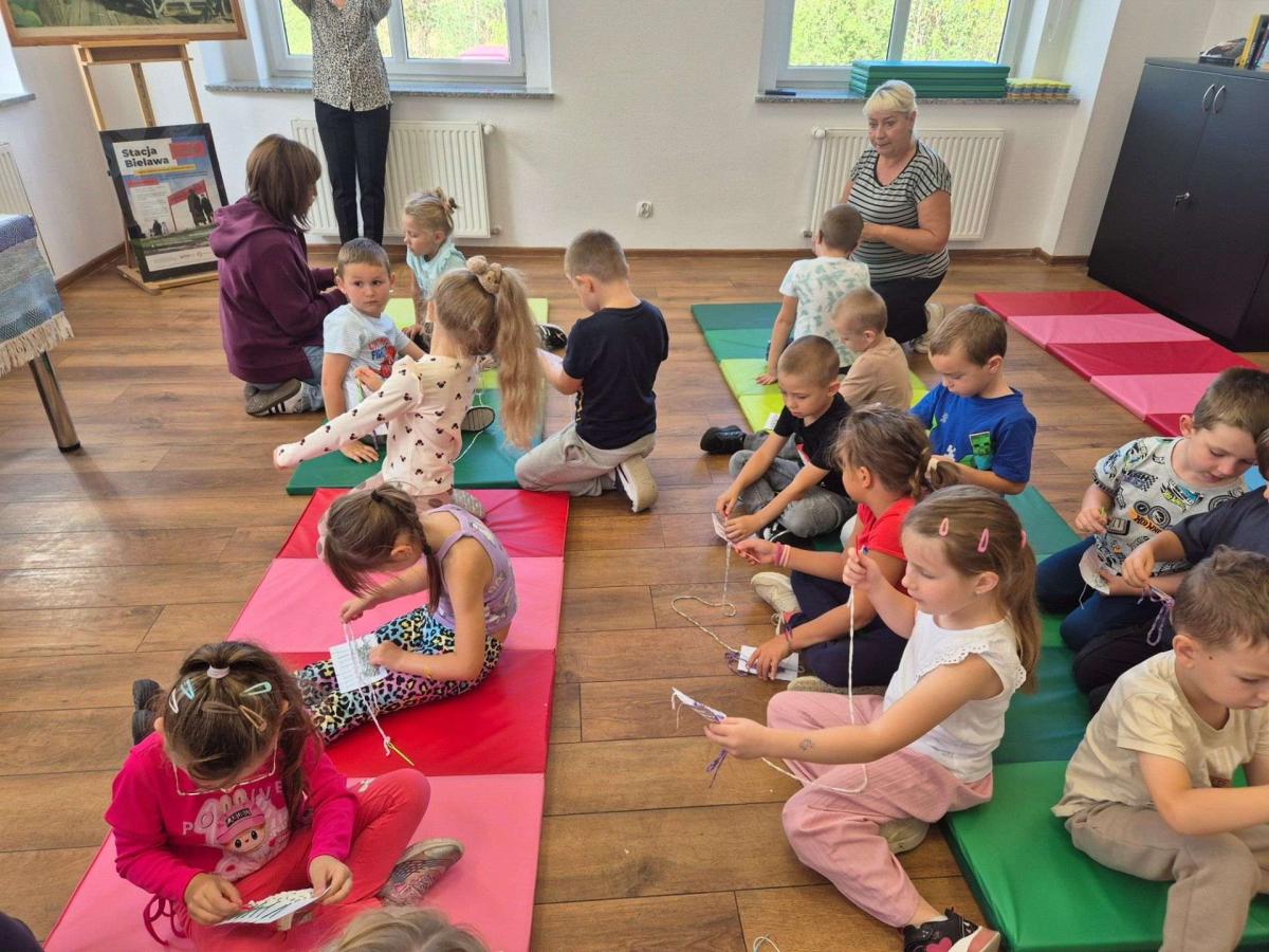 W dniach 16-17.09.2025 dzieci z grupy „Słoneczka” i "Jagódki" wybrały się do Miejskiej Biblioteki Publicznej w Bielawie na wyjątkowe warsztaty poświęcone tkactwu. Już sama wyprawa była dla przedszkolaków ekscytującym przeżyciem, a to, co czekało na nich na miejscu – jeszcze bardziej!