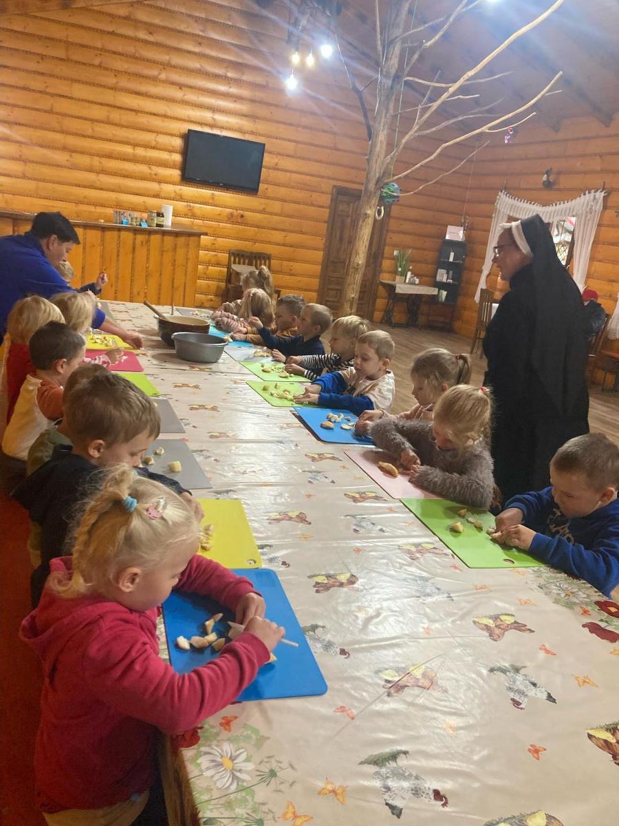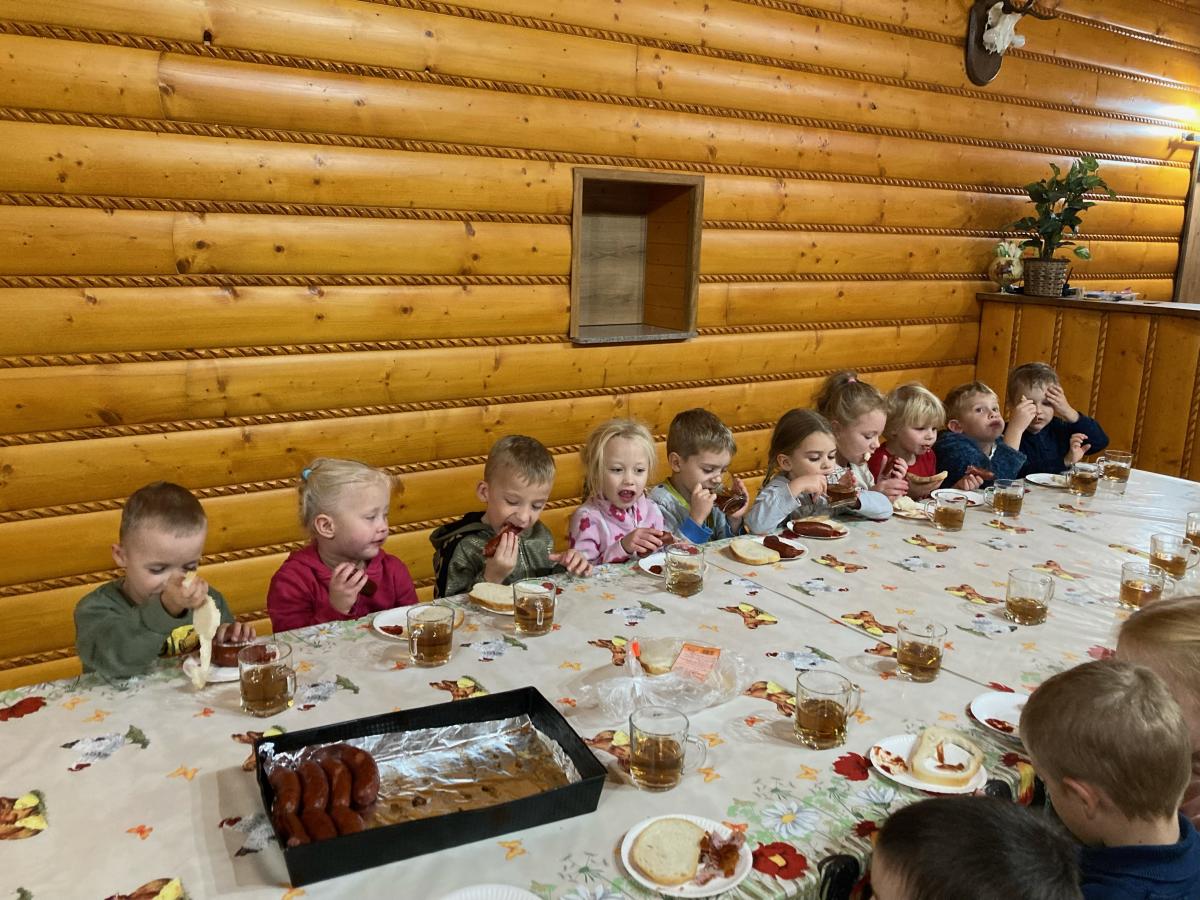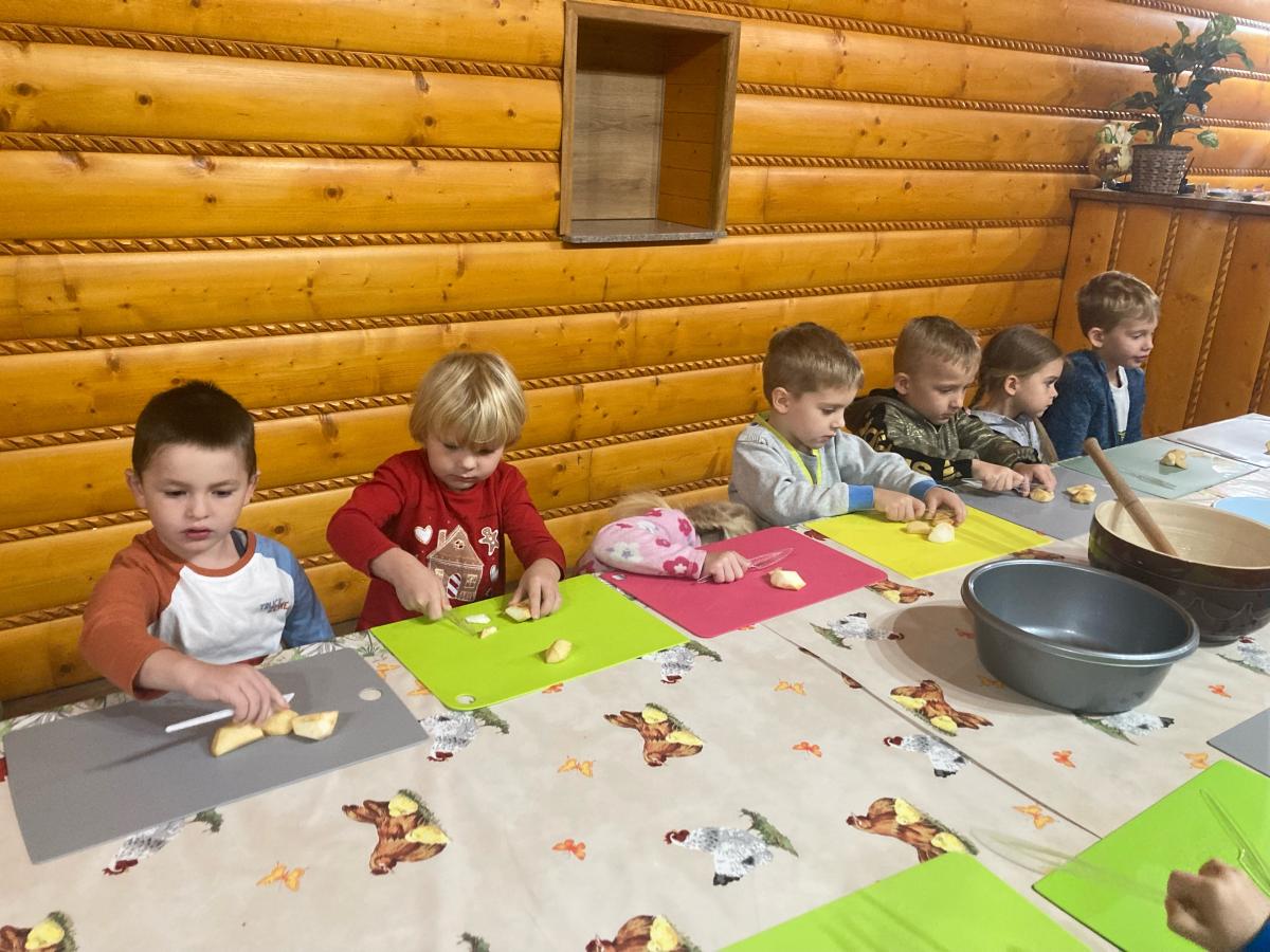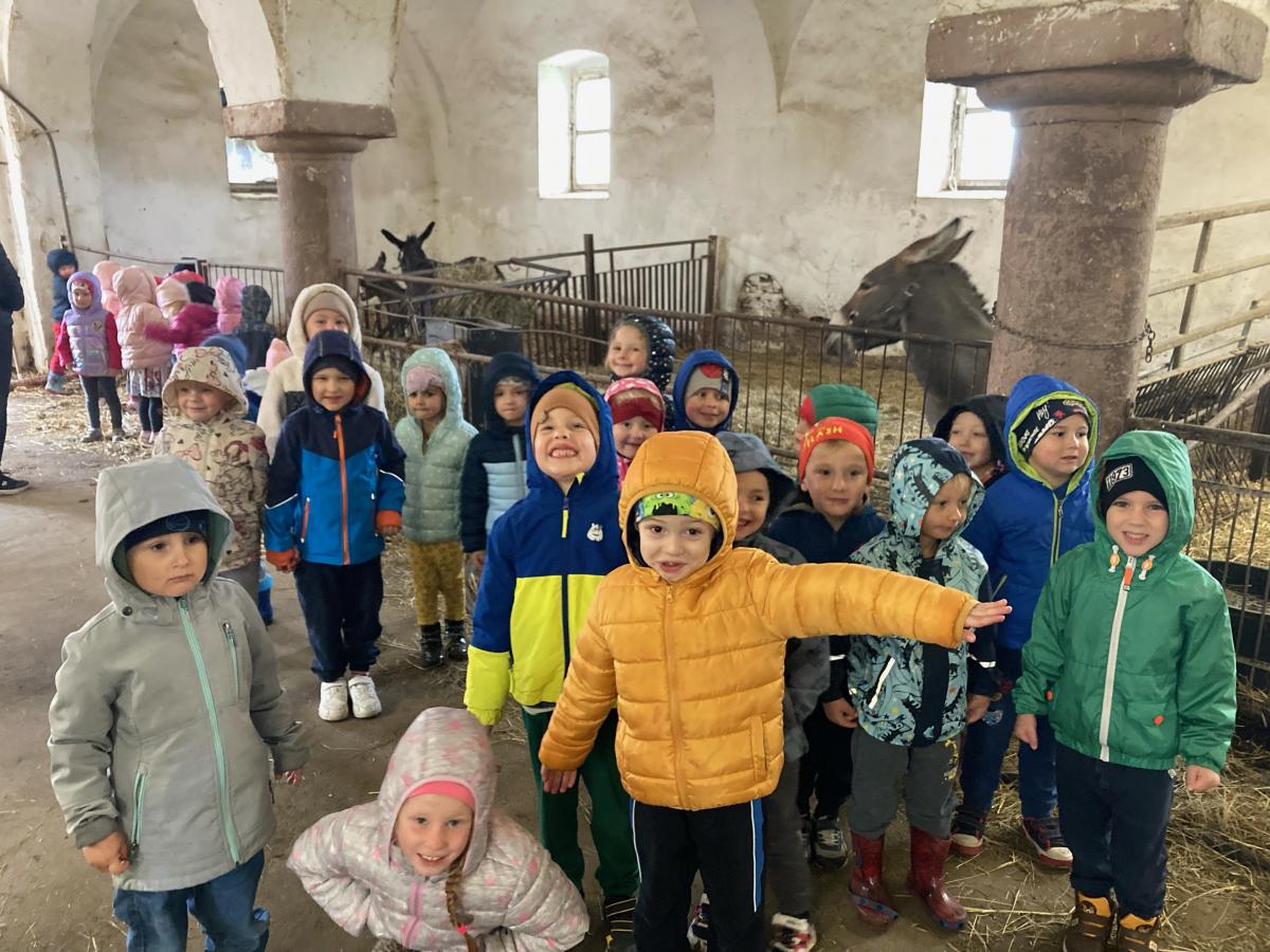 Grupa „Słoneczka”i „Żabki” z Publicznego Przedszkola Integracyjnego w Bielawie w dniu 09.10.2023 uczestniczyła w warsztatach pt. „Dary jesieni” w Zagrodzie Edukacyjnej Marianówek w Dobrocinie. Przedszkolaki zapoznały się z darami jesieni, przede wszystkim z tym, co oferuje nam sad i ogród warzywny oraz wykonanymi z nich przetworami. Wspólnie uczestniczyły w warsztatach wykonując „jabłecznikowy salceson”- sami kroili jabłka, dodawali poszczególne składniki i ucierali ciasto w makutrze. Gdy placek piekł się w piekarniku dzieci zapoznały się ze zwierzętami zamieszkującymi gospodarstwo takim jak: konie, lamy, kozy, świnka, osiołki oraz kury z kogutem, kaczki i gęsi. Po nakarmieniu zwierząt przedszkolaki udały się na pyszną kiełbaskę z chlebkiem i herbatą oraz ciasto, które akurat się upiekło. Dzieciom bardzo podobały się zajęcia i wszystko wyśmienicie smakowało - zwłaszcza ciasto, które same przygotowały. Pychotka! Palce lizać… mniam. Wycieczka była bardzo udana…już nie możemy doczekać się kolejnej.
