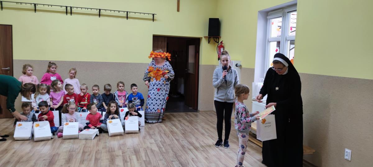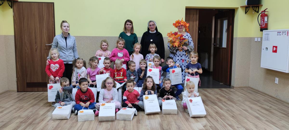Wszyscy uczestnicy konkursu otrzymali pamiątkowe nagrody, a ich prace stworzyły przepiękną galerię w głównym holu przedszkolu. Dodatkową niespodzianką dla dzieci był odbiór nagród z rąk samej Pani Jesieni.