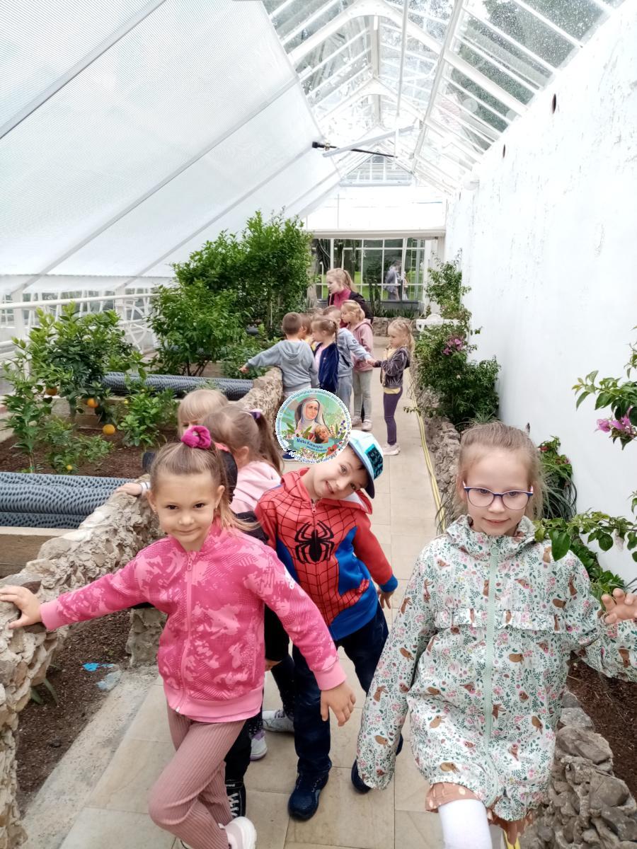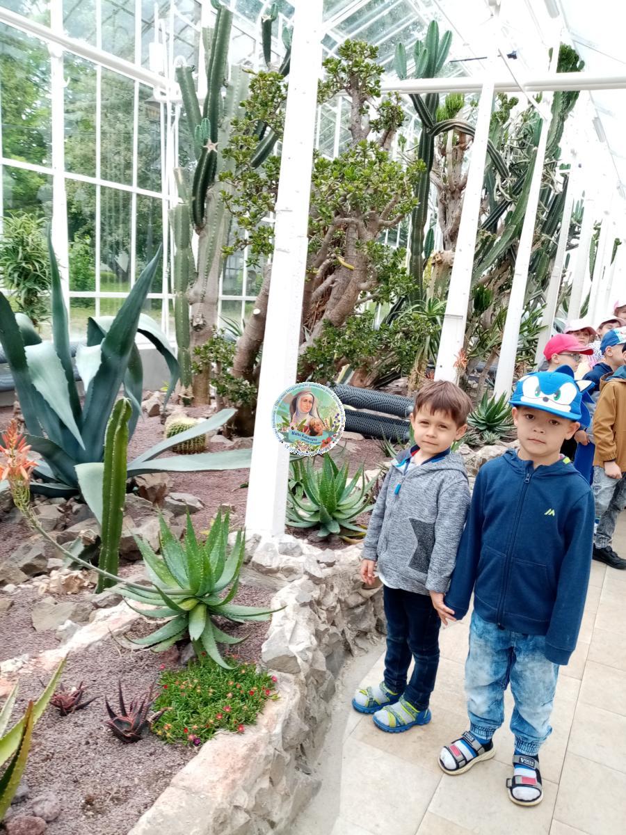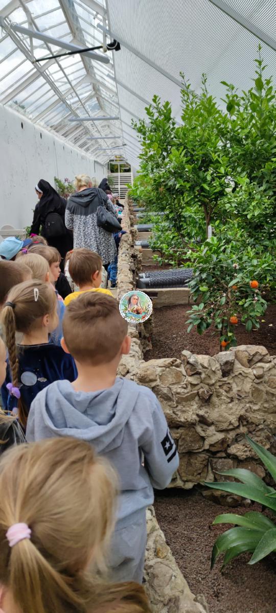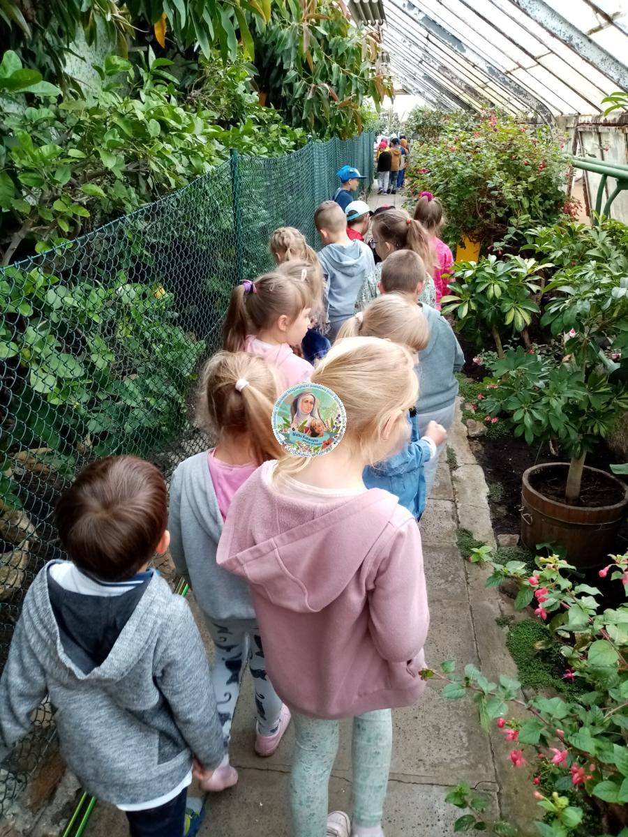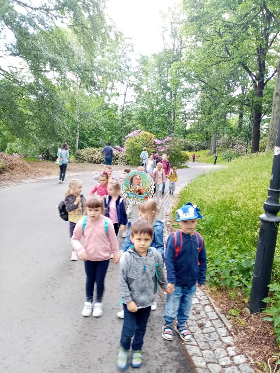 i rozmach budowli wzniesionej na skalnym niezdobytym nigdy wzgórzu. Po krótkim posiłku zjedzonym w zamkowym parku pojechaliśmy do Palmiarni. Tam podziwialiśmy egzotyczne rośliny, palmy, drzewka cytrusowe z pomarańczami, limonkami, mandarynkami, kaktusy, japońskie drzewka bonsai. Szczególnym zainteresowaniem dzieci cieszyły się żółwie odpoczywające wśród bujnej roślinności w małych oczkach wodnych. W akwariach pływały rybki, a w dużych zagrodach swoje pióra prezentowały pawie, lemury w rodzinnej gromadzie spoglądały na dzieci, na drzewach zaś uwijały się kolorowe papugi. Autokar przywiózł nas znów do zamkowej restauracji, gdzie zjedliśmy pyszny, obfity obiad i pełni wrażeń, niektórzy zmęczeni, wróciliśmy szczęśliwie do Bielawy. Przy przedszkolu już rodzice czekali na swoje pociechy.
