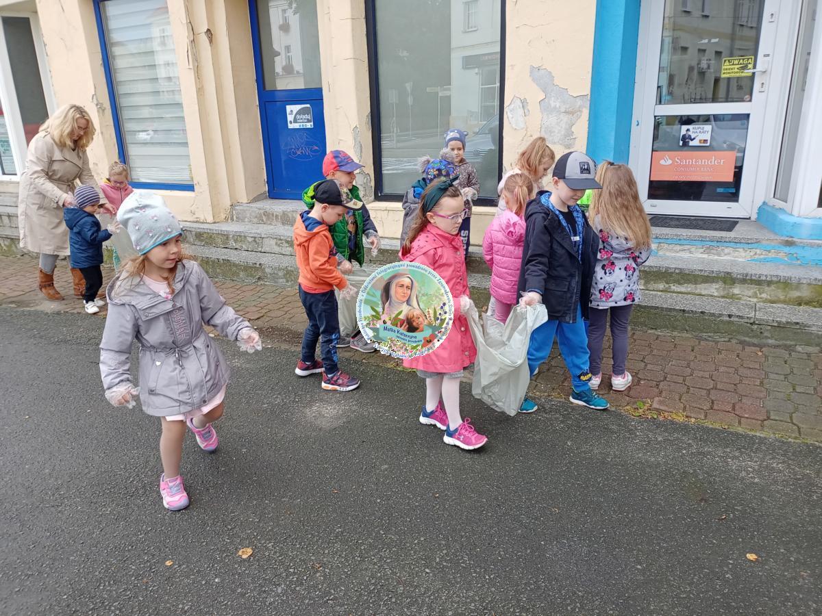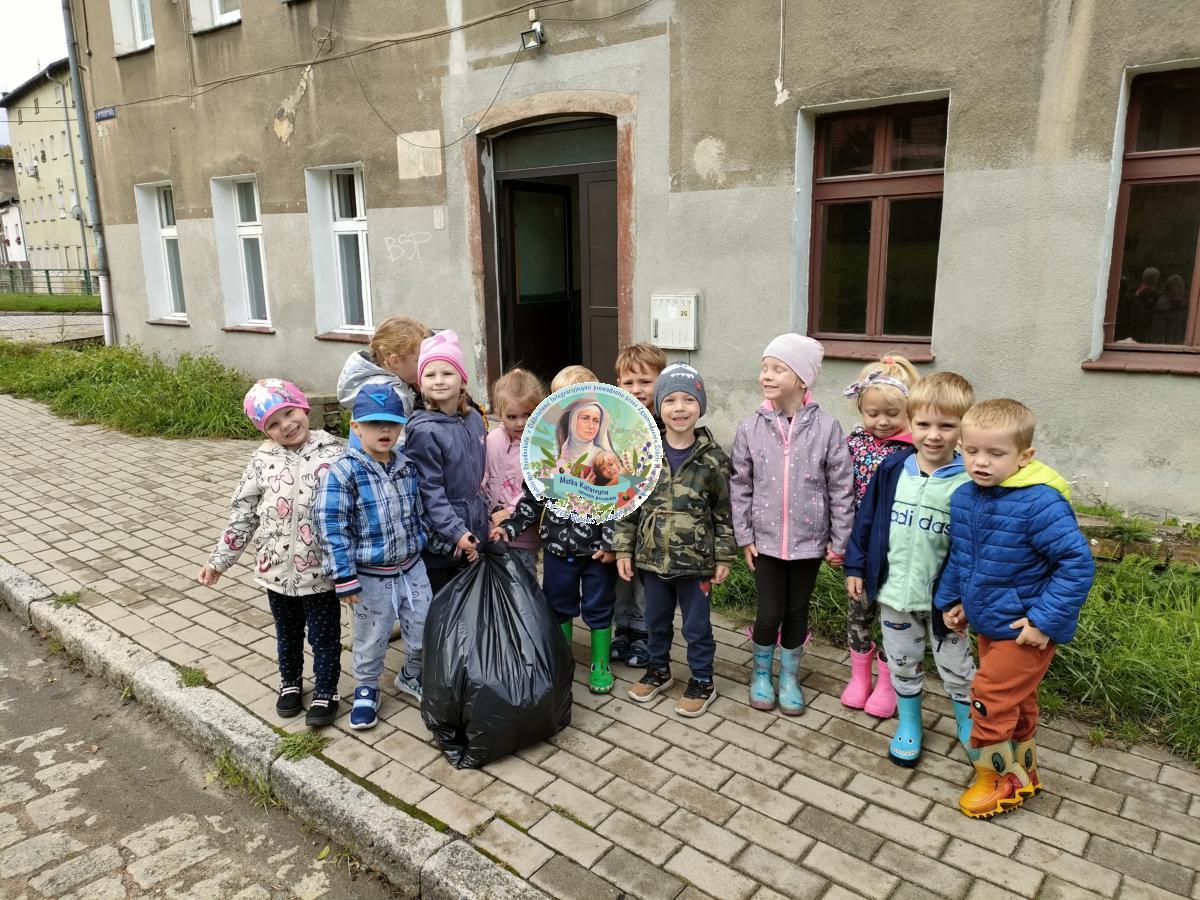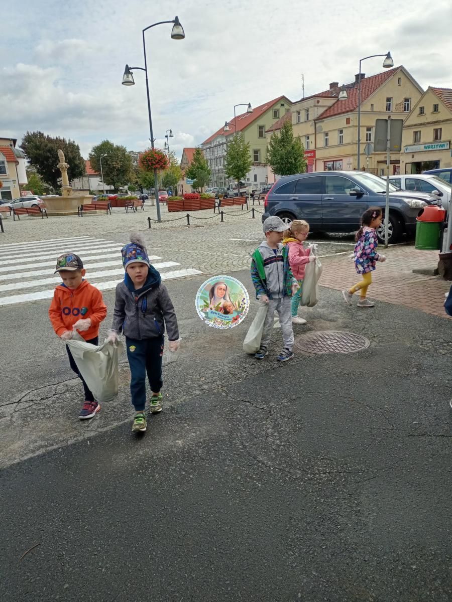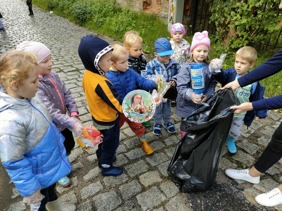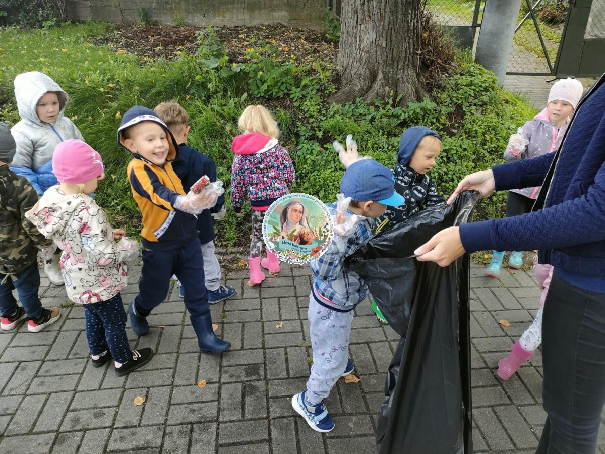 Przedszkolaki z naszej placówki, wyposażone w rękawiczki i worki na odpady jeszcze przed południem wyruszyły w rejony położone w pobliżu naszej placówki. Z ogromną radością i satysfakcją, uważnie spacerowały poszukując porzuconych na ziemi odpadów. Ich skupienie i determinacja przyczyniły się do zebrania sporej ilości śmieci. Zadowolone ze swojej pracy zespołowej wróciły do przedszkola, dzieląc się spostrzeżeniami dotyczącymi skali zanieczyszczenia najbliższej okolicy oraz nieodpowiedniego zachowania wszystkich tych, którzy celowo zaśmiecają nasze miasto. Dzieci z tego dnia wyciągnęły liczne wnioski, o których zamierzały porozmawiać również w domu z rodzicami i rodzeństwem. Zorganizowana akcja z całą pewnością znalazła pozytywny oddźwięk w uwrażliwianiu najmłodszych na potrzebę dbania o przyrodę.