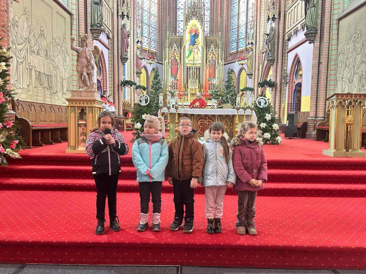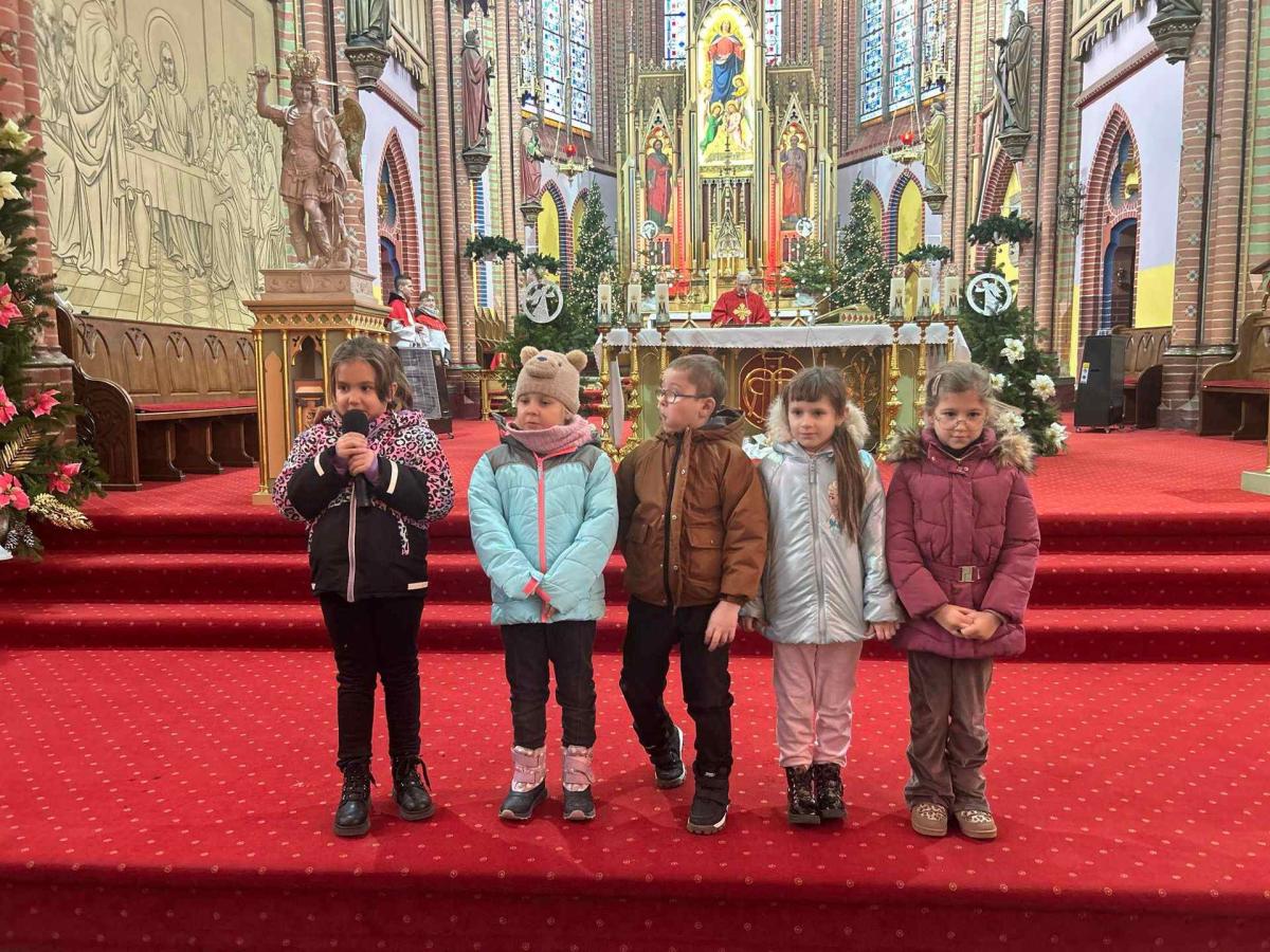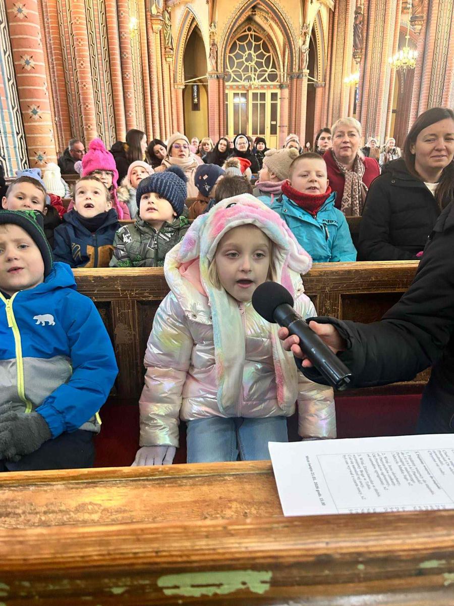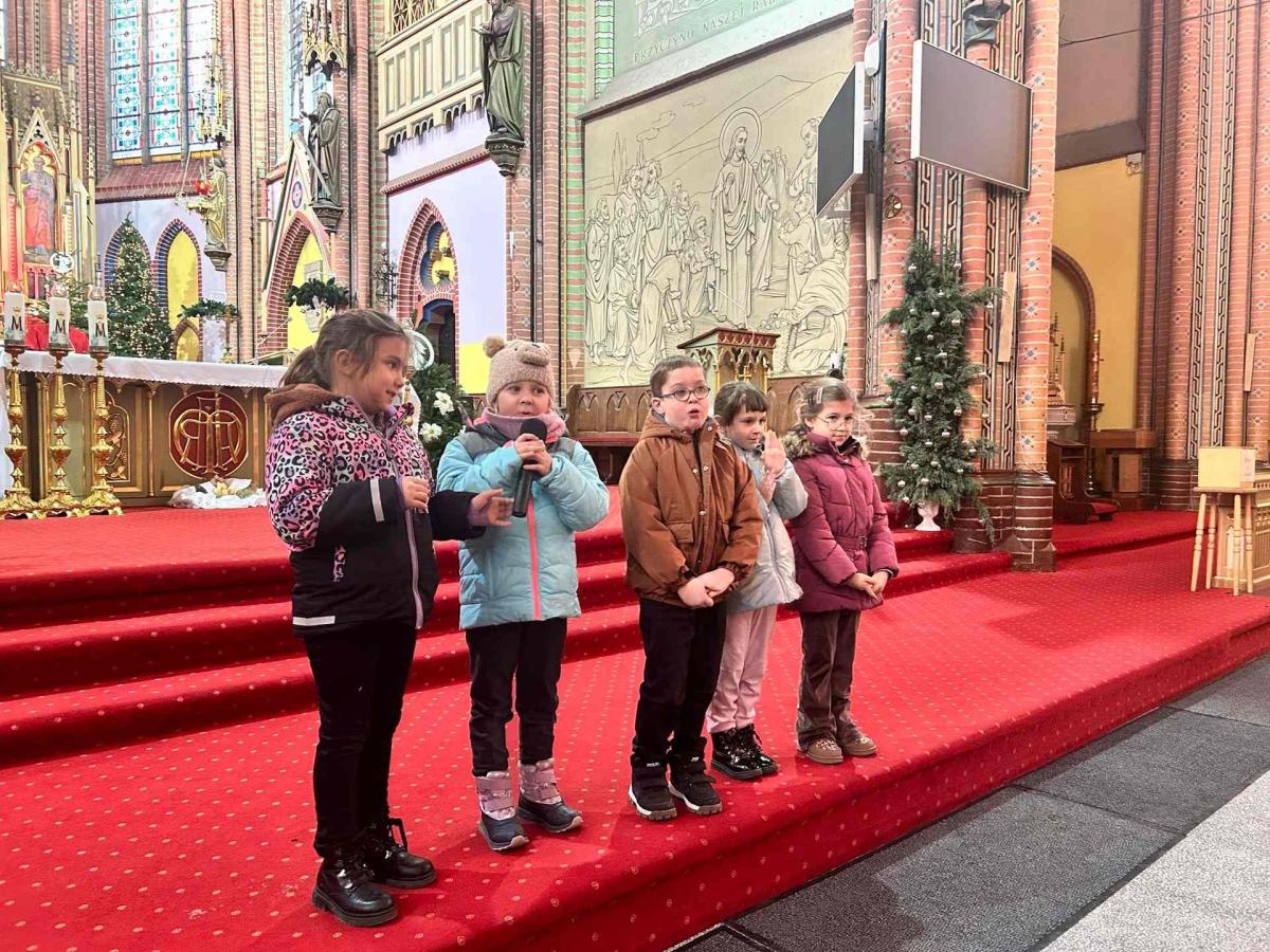 Dzieci z wielkim zaangażowaniem zaprezentowały przygotowany program artystyczny, dzieląc się z publicznością swoją energią i dziecięcą szczerością. Każda piosenka i każdy gest wywoływały uśmiechy oraz wzruszenie wśród zgromadzonych gości. Entuzjazm widowni był tak duży, że prowadzący poprosił o bis, a publiczność została zaproszona do wspólnego włączenia się w pokazywanie ruchów razem z dziećmi. Ten wyjątkowy moment stworzył piękne poczucie wspólnoty i sprawił, że świąteczna radość połączyła wszystkich obecnych.