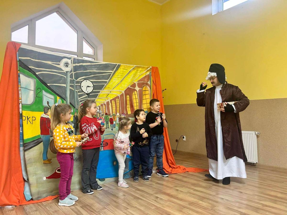 W przedszkolu odbyło się wyjątkowe spotkanie kolędowe, które poprowadził ksiądz Tomasz. W wydarzeniu wzięły udział wszystkie grupy wiekowe – od najmłodszych po najstarsze dzieci. Ksiądz w ciepłych i prostych słowach opowiedział dzieciom o znaczeniu kolędy oraz o narodzinach Pana Jezusa, dostosowując przekaz do wieku przedszkolaków. Dzieci z wielkim zaangażowaniem i radością zaśpiewały kolędę, tworząc świąteczną, pełną spokoju i wzruszenia atmosferę. Spotkanie zakończyło się wspólną modlitwą, podczas której wszyscy obecni dziękowali za miniony czas oraz prosili o dobro i błogosławieństwo. Było to piękne i wartościowe wydarzenie, które sprzyjało budowaniu wspólnoty oraz kultywowaniu tradycji bożonarodzeniowych.