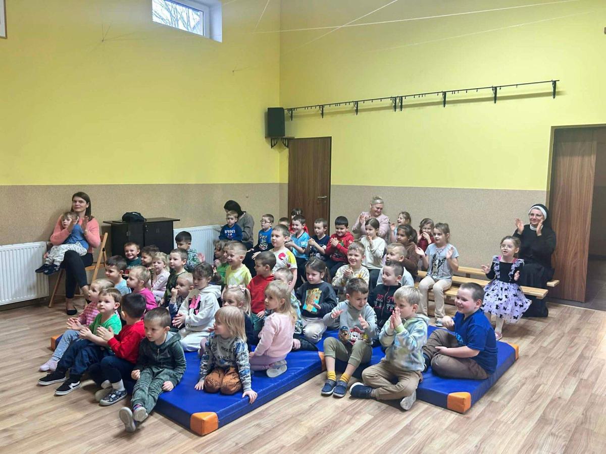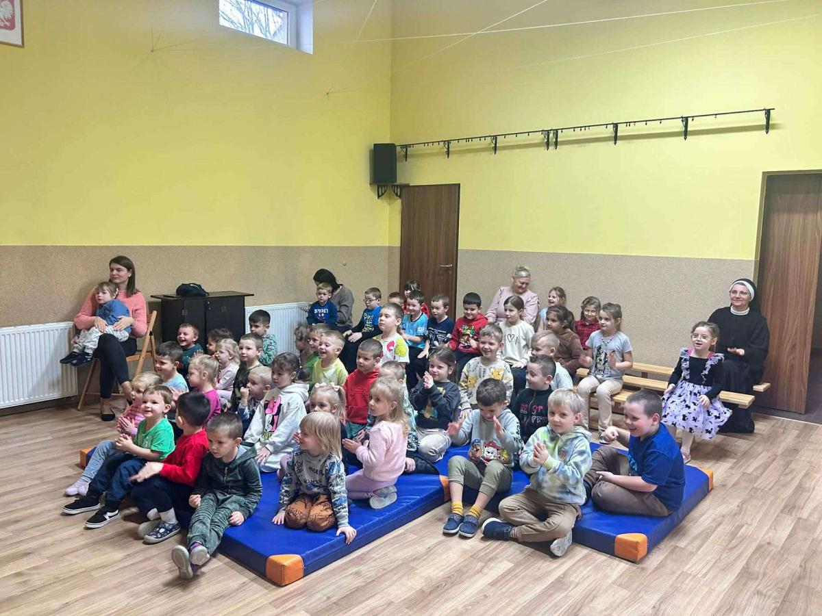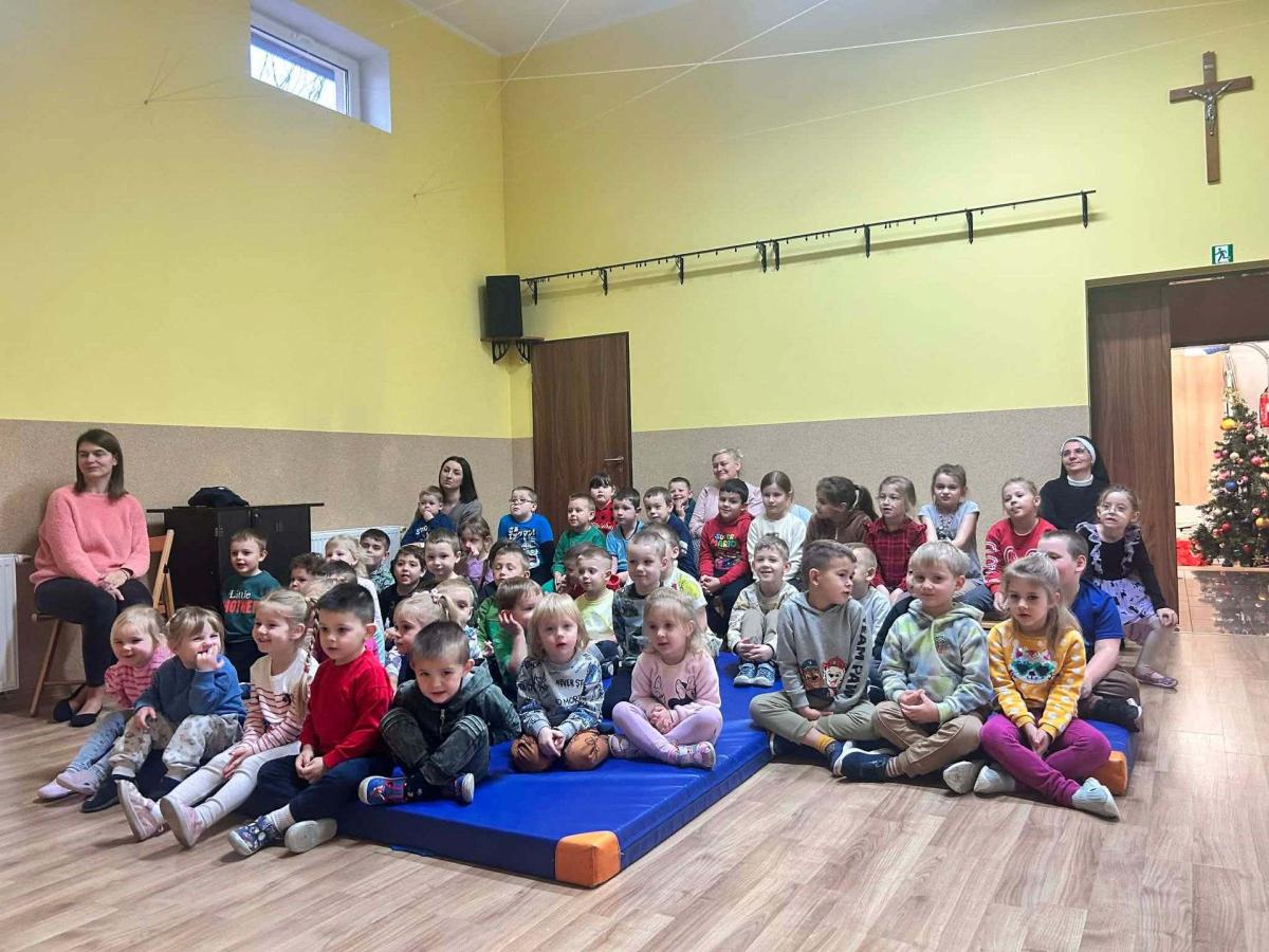 W przedszkolu odbyła się uroczysta wigilia z udziałem dzieci i nauczycieli. Sala była pięknie udekorowana, a w tle śpiew kolęd. Dzieci, ubrane w odświętne stroje, składały sobie życzenia i dzieliły się opłatkiem, ucząc się w ten sposób tradycji oraz okazywania życzliwości i szacunku innym. Następnie wszyscy zasiedli do wspólnego, świątecznego poczęstunku. Spotkanie przebiegało w radosnej i ciepłej atmosferze, pełnej uśmiechu, integracji i świątecznego nastroju.