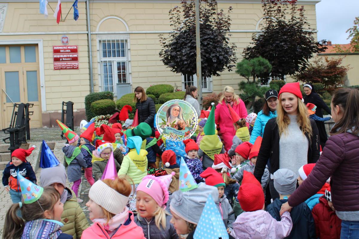 Dzień 20.09. 2022 r. w naszym Przedszkolu był wyjątkowy i niepowtarzalny. Tego dnia mogliśmy wspólnie przeżywać Międzynarodowy Dzień Przedszkolaka. Nasze świętowanie rozpoczęło się już wczesnym rankiem, kiedy o 9:30 Grupa Misiów, Sówek, Pszczółek oraz Żabek wraz z dziećmi w innych Bielawskich przedszkoli spotkali się na rynku. Czekała tam na nas świetna zabawa oraz tańce w rytm muzyki przygotowanej przez Panie organizatorki.