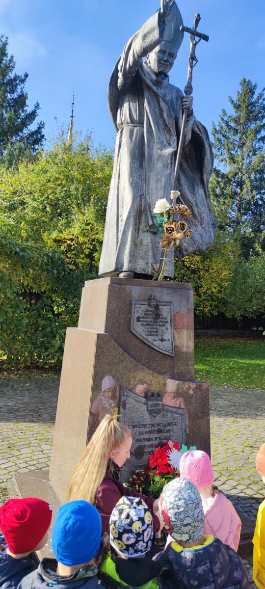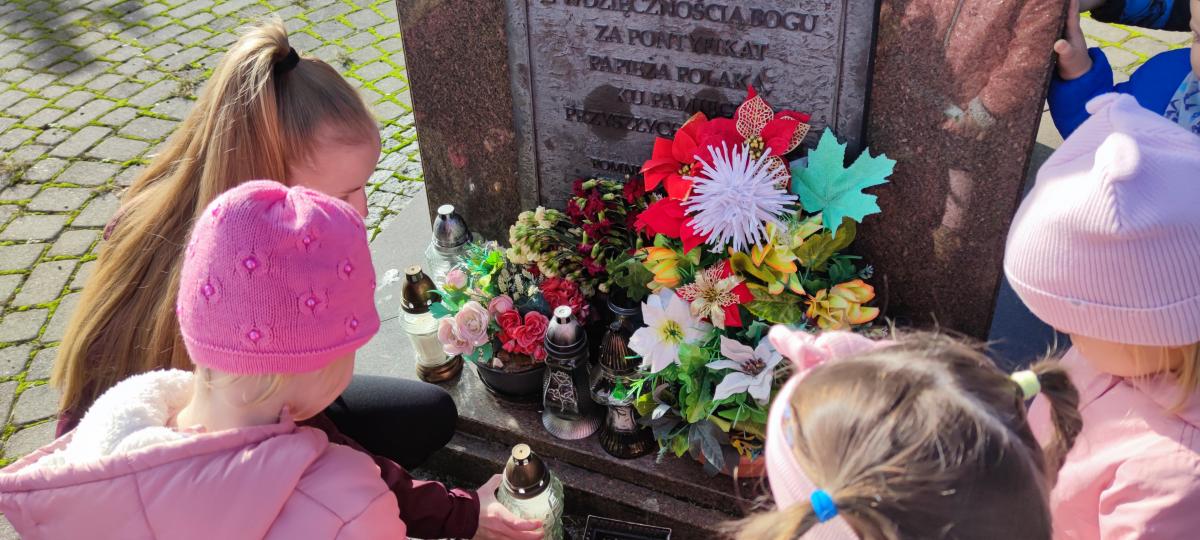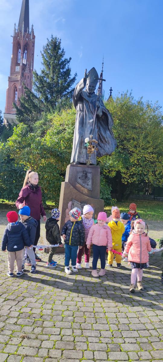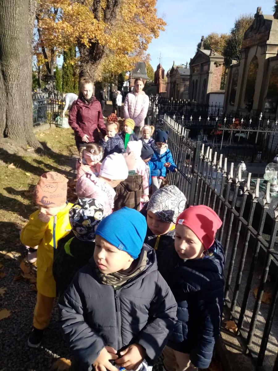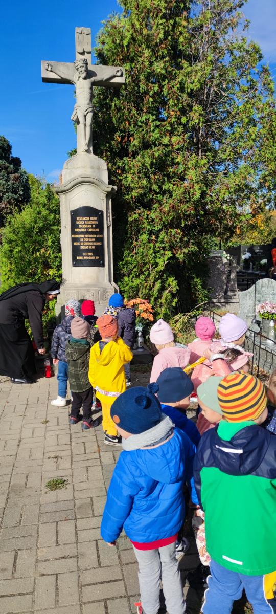 Dnia 30.10.2023 najmłodsza grupa "Jagódki" wybrała się pod pomnik Ojca Świętego Jana Pawła II, gdzie modliła się o pokój na całym świecie i w naszej Ojczyźnie, zapalając symboliczny znicz. Potem udaliśmy się na cmentarz parafialny i przy grobowcu Sióstr Augustianek również zapaliliśmy znicz i pomodliliśmy się o radość wieczną dla zmarłych Sióstr i mieszkańców Bielawy.