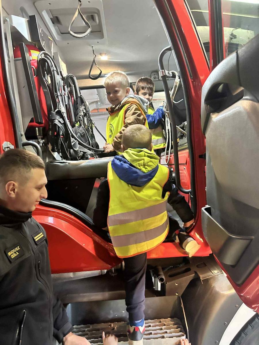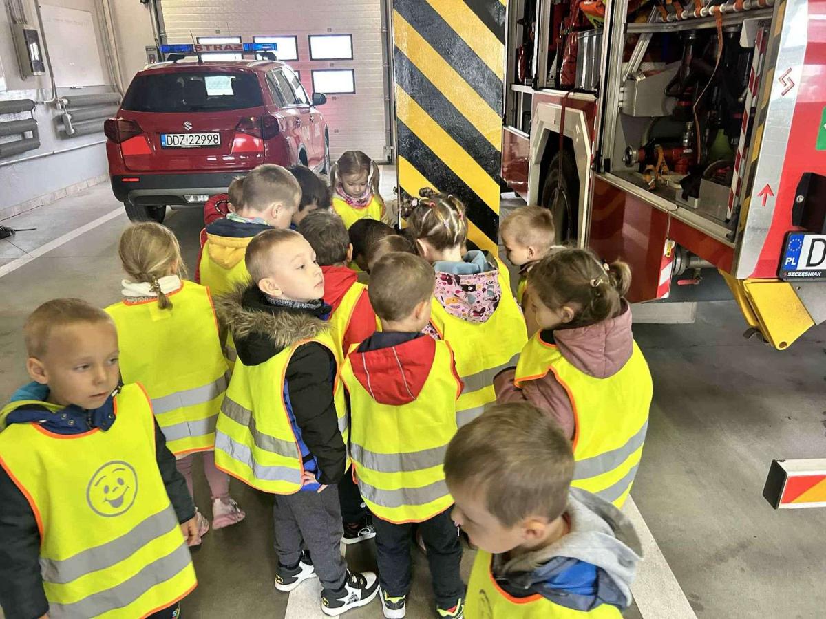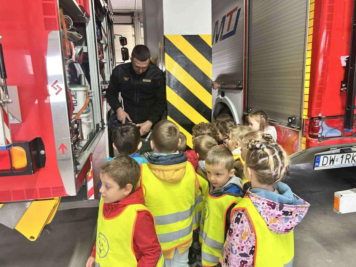 Dzieci z grupy Jeżyki wybrały się 01.10 na wycieczkę do Komendy Powiatowej Państwowej Straży Pożarnej w Dzierżoniowie. Przedszkolaki miały okazję poznać pracę strażaków, zobaczyć wozy strażackie oraz sprzęt używany podczas akcji ratunkowych. Strażacy opowiedzieli o swojej odpowiedzialnej pracy i przypomnieli zasady bezpieczeństwa. Największą atrakcją była możliwość wejścia do wozu strażackiego. Wycieczka była pełna wrażeń i dostarczyła dzieciom wielu ciekawych informacji.