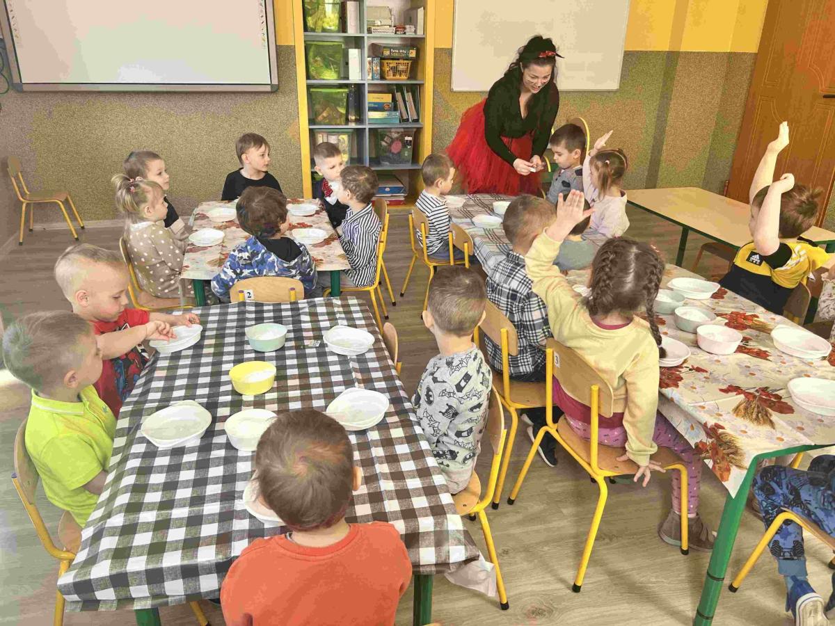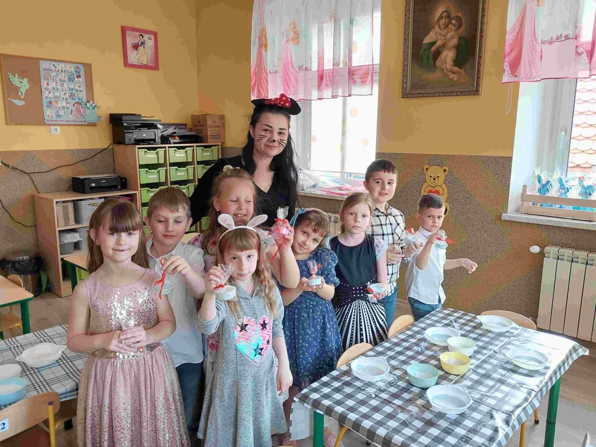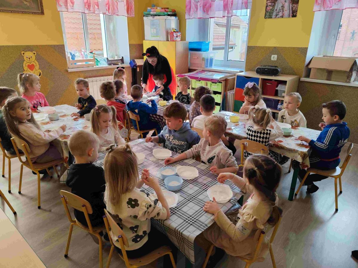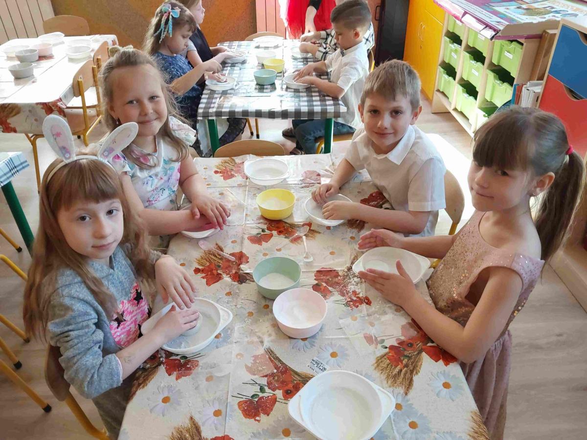We wtorek (8.04) w naszym Przedszkolu odbyły się we wszystkich grupach warsztaty pt. „Kule do kąpieli”. To pełen kolorów i zapachów warsztat, podczas którego dzieci wyrabiały musujące kule do kąpieli z dodatkami zapachowych barwników. Samodzielnie wykonanymi kulami można obdarować bliskie osoby. Warsztaty były połączone z sesją wielkanocną.