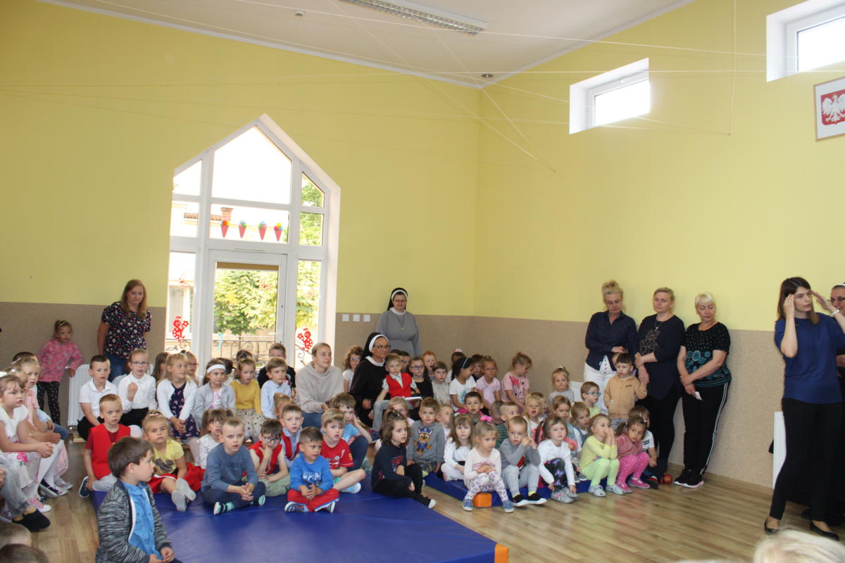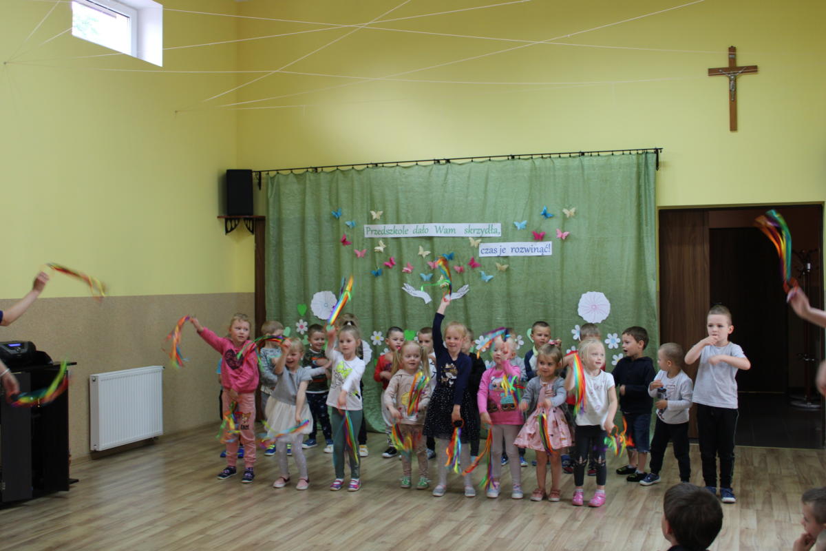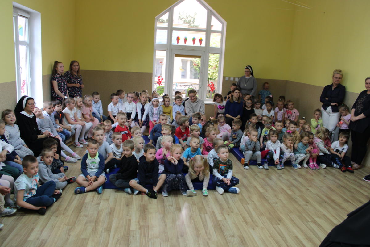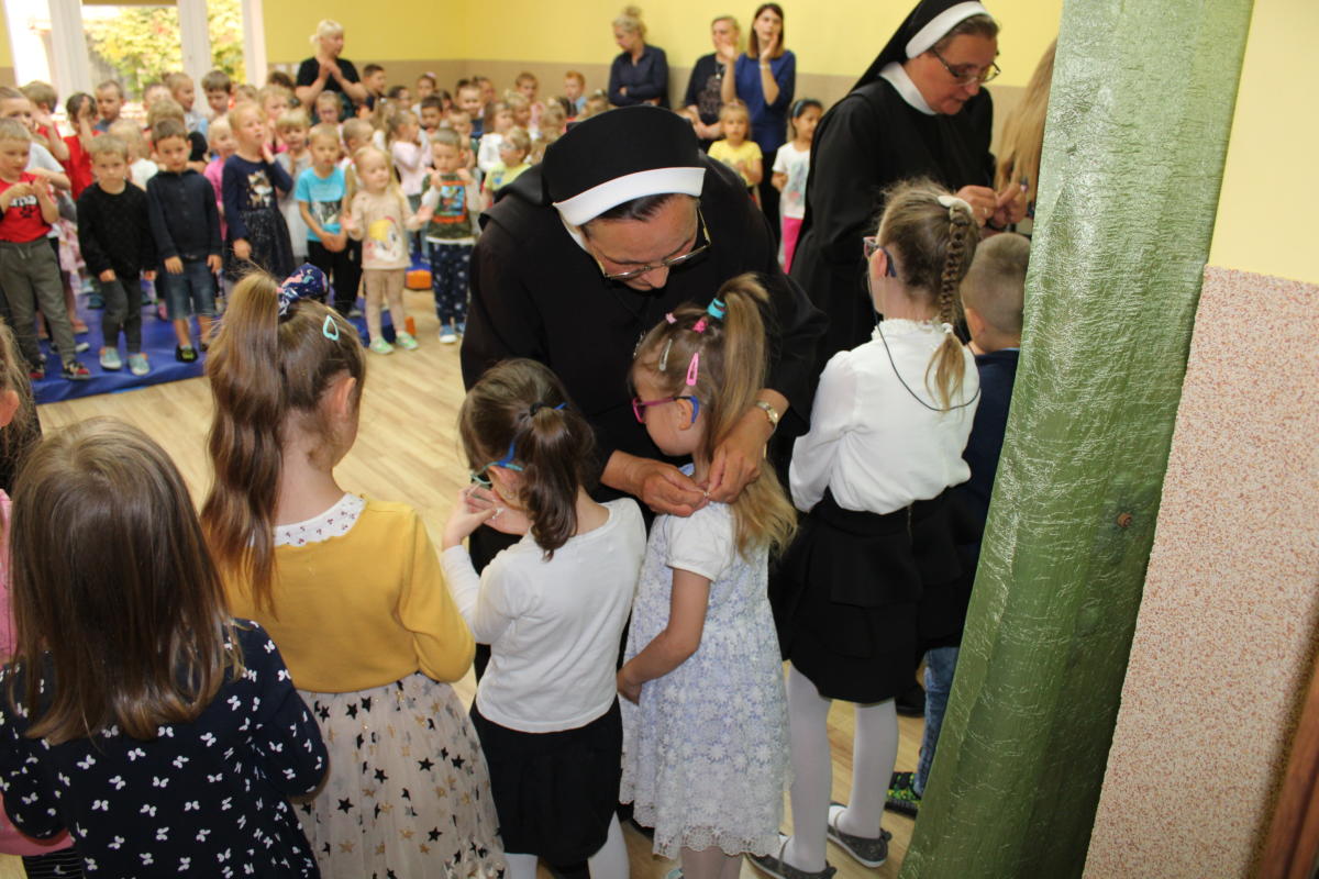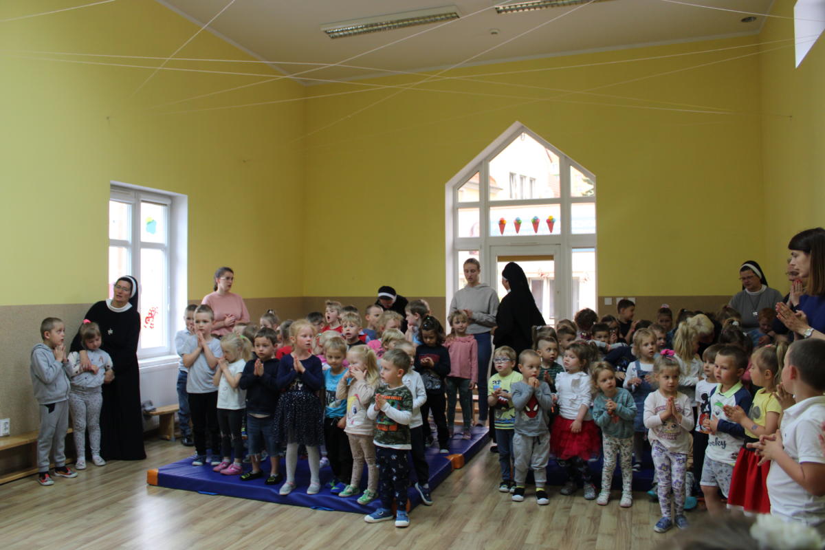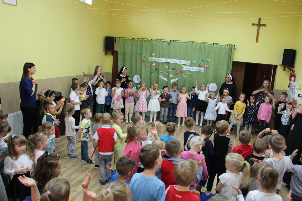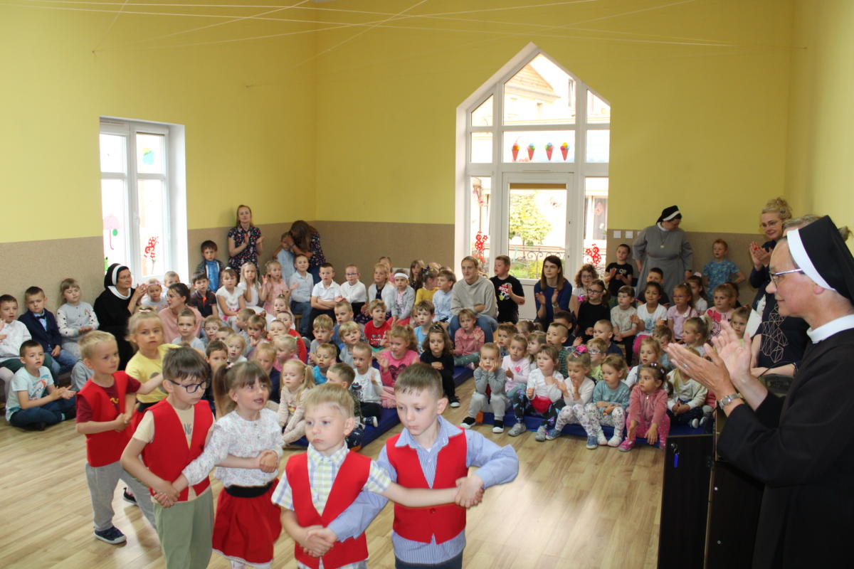 W dniu dzisiejszym młodsze przedszkolaki pożegnały swoich starszych kolegów i koleżanki, których po wakacjach czeka już nowa przygoda w szkole. Spotkanie rozpoczęliśmy gorącą modlitwą za naszych absolwentów, oddając ich w szczególną opiekę Maryi. Zostali obdarowani niezwykłym upominkiem – cudownym medalikiem Matki Bożej Niepokalanej, by pod Jej płaszczem radośnie wzrastali przez dalsze lata nauki. Nasi „zerówkarze” z zainteresowaniem obejrzeli przygotowany program, wysłuchali piosenek i wierszy, obejrzeli tańce i zostali obdarowani drobnymi prezencikami. Całość spotkania upłynęła w podniosłej i radosnej atmosferze, chociaż niejednemu zakręciła się łezka w oku. Naszym kochanym absolwentom życzymy wielu łask Bożych i sukcesów w szkole.