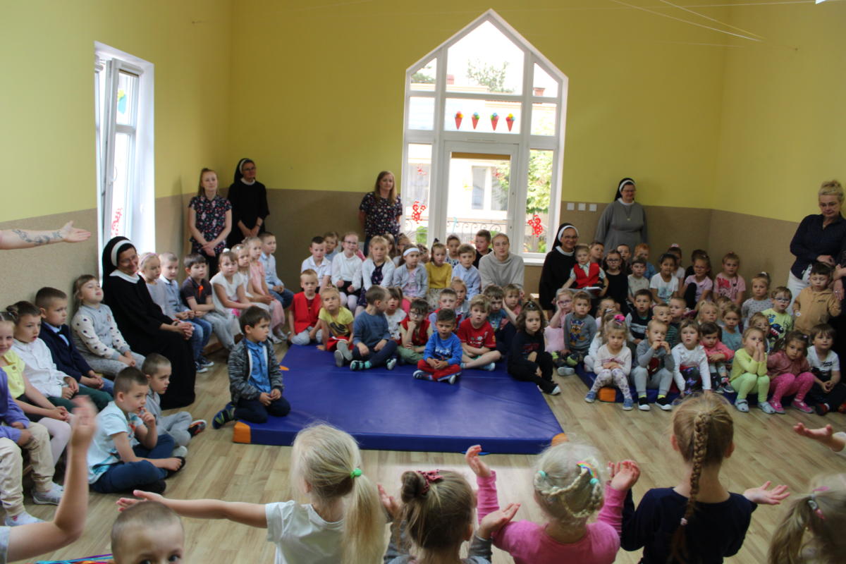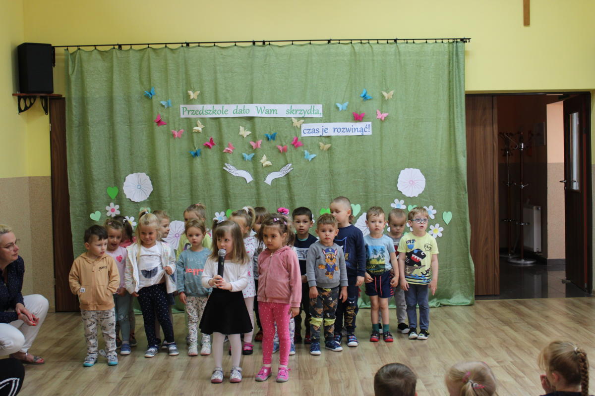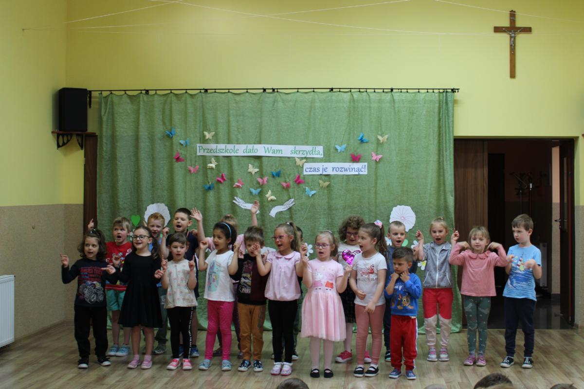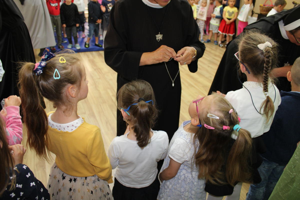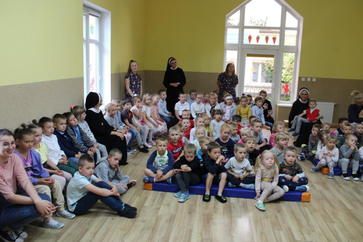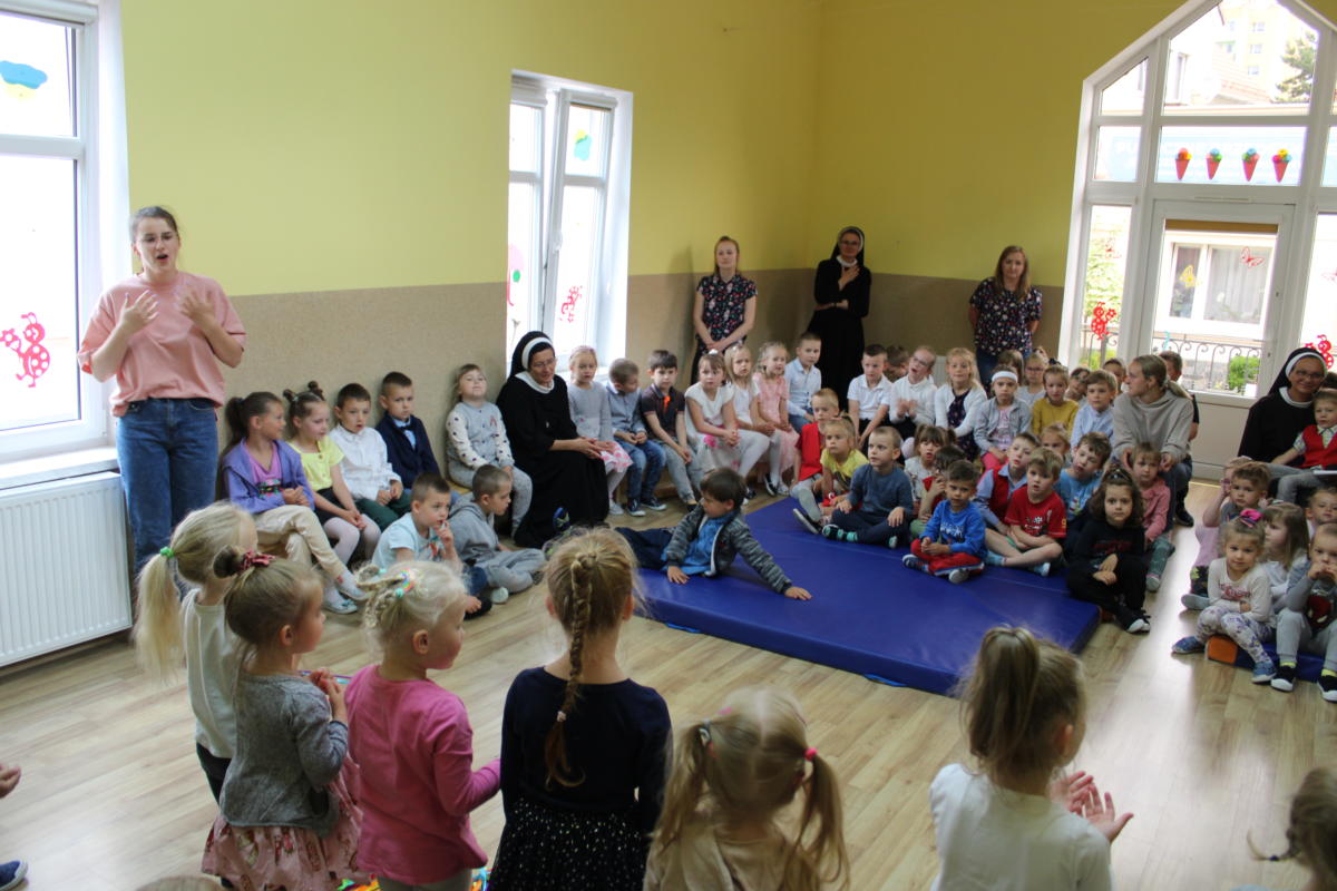 W dniu dzisiejszym młodsze przedszkolaki pożegnały swoich starszych kolegów i koleżanki, których po wakacjach czeka już nowa przygoda w szkole. Spotkanie rozpoczęliśmy gorącą modlitwą za naszych absolwentów, oddając ich w szczególną opiekę Maryi. Zostali obdarowani niezwykłym upominkiem – cudownym medalikiem Matki Bożej Niepokalanej, by pod Jej płaszczem radośnie wzrastali przez dalsze lata nauki. Nasi „zerówkarze” z zainteresowaniem obejrzeli przygotowany program, wysłuchali piosenek i wierszy, obejrzeli tańce i zostali obdarowani drobnymi prezencikami. Całość spotkania upłynęła w podniosłej i radosnej atmosferze, chociaż niejednemu zakręciła się łezka w oku. Naszym kochanym absolwentom życzymy wielu łask Bożych i sukcesów w szkole.