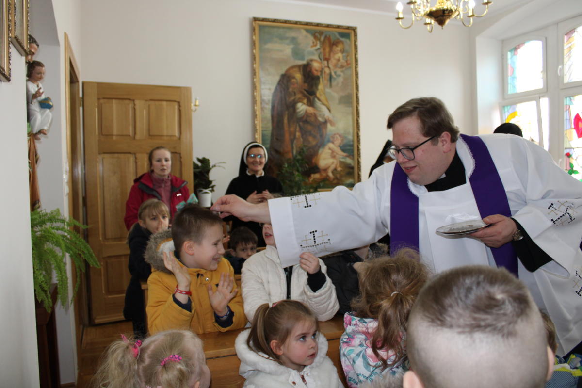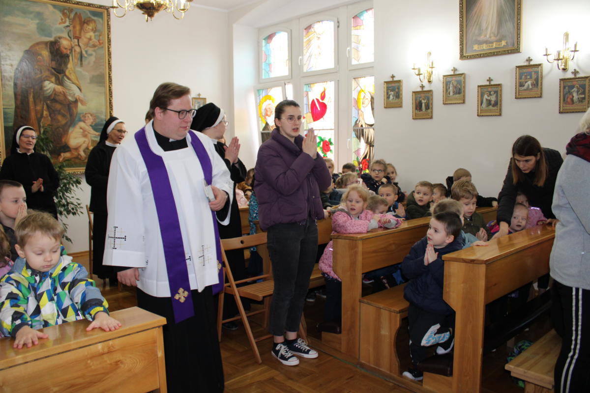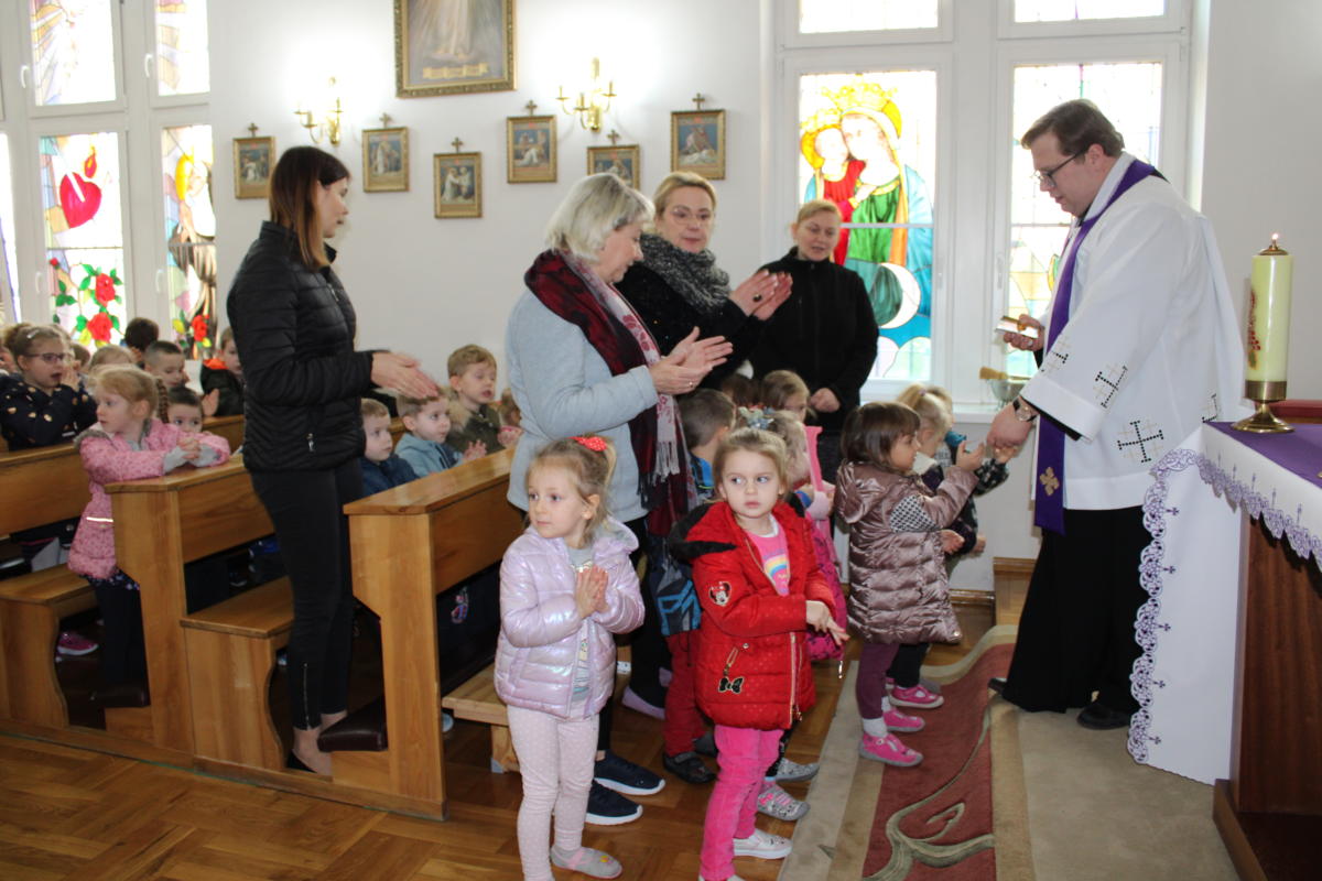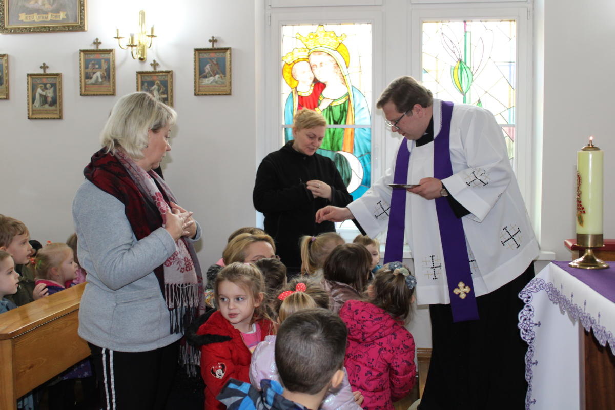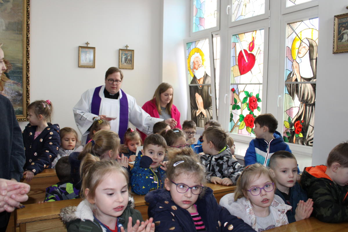W dniu dzisiejszym w naszym przedszkolu wszystkie dzieci oraz Siostry i Panie uczestniczyły w nabożeństwie posypania głów popiołem. Razem z całym Kościołem rozpoczęliśmy okres Wielkiego Postu – czas przygotowania do przeżycia tajemnicy naszej wiary – Zmartwychwstania Pana Jezusa. Razem z naszymi przedszkolakami wyruszamy w czterdziestodniową podróż, aby stawać się coraz lepszymi. Szczypta popiołu przypomina o kruchości naszego życia tu w świecie doczesnym, ale jednocześnie kieruje nasz wzrok i serce ku wartościom nieprzemijającym, które Bóg dla nas przygotował w wieczności. Uczyńmy wszystko, aby Słowo Boże przenikało nasze serce i nasze życie.