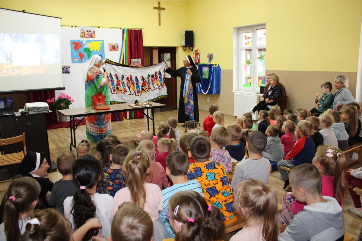 Ostatni tydzień października upływa pod znakiem troski o misyjną działalność Kościoła. Wiele osób tak duchownych jak i świeckich opuszcza swoje ojczyste kraje, by nieść Boga w odległe strony świata. Ale ci ludzie nie mogliby skutecznie pomagać tubylcom bez naszej pomocy. Wsparci naszymi datkami budują studnie, ośrodki zdrowia, szpitale, domy dziecka, kościoły i inne potrzebne placówki. Także społeczność naszego przedszkola włącza się w ta dobroczynną działalność.