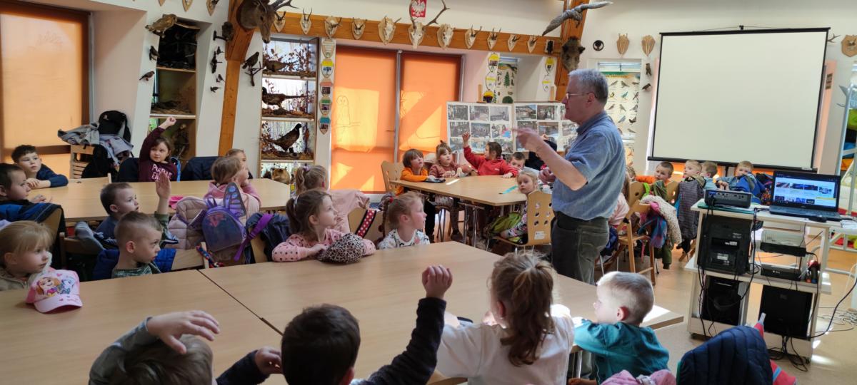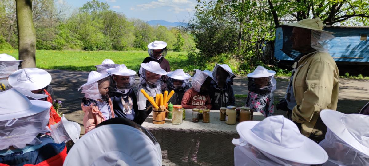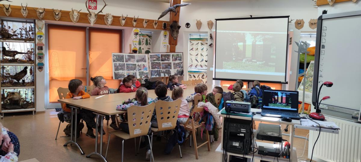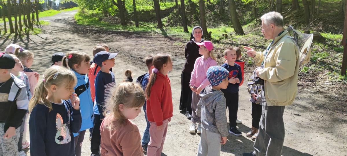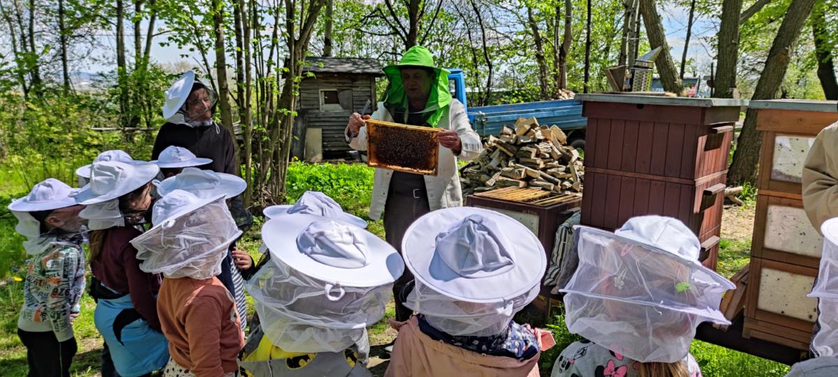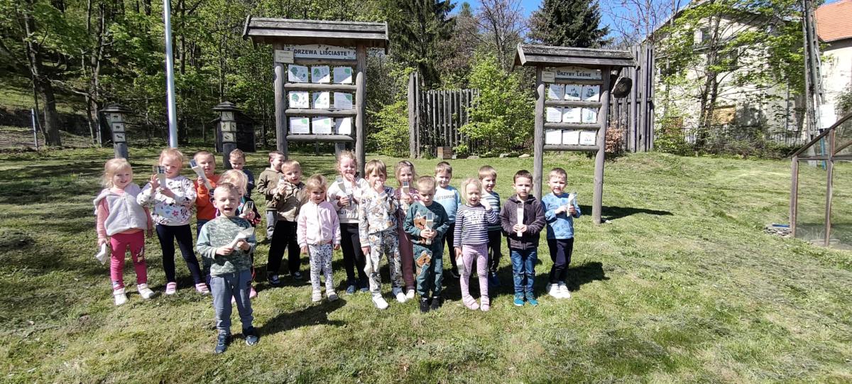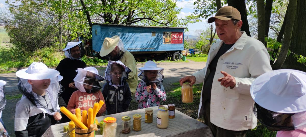 Dnia 10.05.2023 dzieci z grupy „Żabki” i „Misie” wybrały się na wycieczkę do Szkoły Leśnej w Bielawie – Międzynarodowego Ośrodka Edukacji Ekologicznej. Po dotarciu na miejsce zostaliśmy miło przywitani przez pana Józefa, koordynatora obiektu. Pierwszym punktem spotkania były zajęcia w budynku szkoły i oglądanie filmu edukacyjnego na temat pszczół. Po seansie pan Józef poprowadził zajęcia tematyczne z zakresu edukacji ekologicznej i ochrony środowiska. Opowiadał o życiu i zwyczajach leśnych zwierząt. Dzieci miały możliwość podzielić się swoją wiedzą i doświadczeniami i w trakcie pogadanki zadawać pytania prowadzącemu. Potem przyszedł czas na zjedzenie drugiego śniadania. Kolejnym punktem wizyty były zajęcia dydaktyczne w plenerze. Przedszkolaki wraz z wychowawczyniami udały się lasem do „Pasieki Pod Lasem”. Pan Czesław, właściciel pasieki, w bardzo ciekawy i interesujący sposób opowiadał nam o zawodzie pszczelarza. Odkrywaliśmy wspólnie tajemnice pszczelej rodziny, a na koniec rozpoznawaliśmy pszczele dary. Po powrocie z pasieki był czas na zabawy badawcze w terenie. Dzieci za pomocą specjalnych „łapek” mogły samodzielnie złapać i obserwować owady, a za pomocą słuchawek posłuchać ich odgłosów. Po pełnych wrażeń doświadczeniach i zabawach przyszedł czas na pieczenie kiełbasek oraz swobodne zabawy ruchowe w terenie. Po regeneracyjnym posiłku ruszyliśmy do autokaru, którym bezpiecznie wróciliśmy do przedszkola. Dzięki uczestnictwu w zajęciach dzieci mogły doświadczyć i zaobserwować wiele zjawisk przyrodniczych. Wszystko to buduje poczucie więzi z naturalnym otoczeniem oraz kształtuje świadomość dzieci w zakresie poszanowania środowiska naturalnego. Wizyta w Szkole Leśnej na długo zostanie w naszej pamięci. Dziękujemy panu Józefowi i panu Czesławowi za przekazanie wiedzy w bardzo ciekawy sposób i zorganizowanie fantastycznych zajęć dla przedszkolaków.